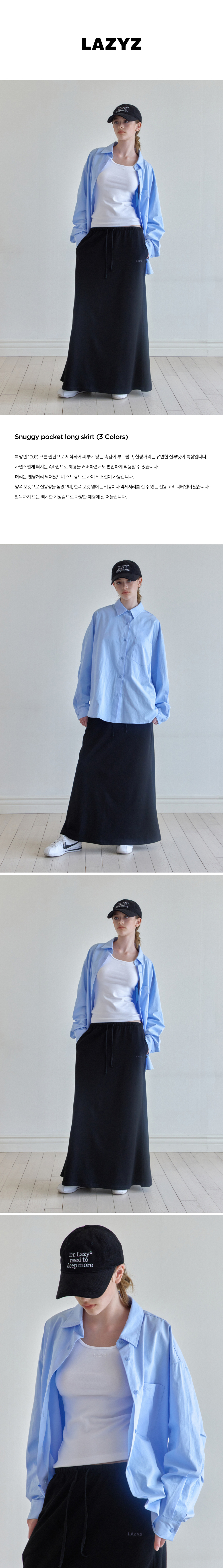 레이지지 스너기 포켓 롱 스커트 블랙