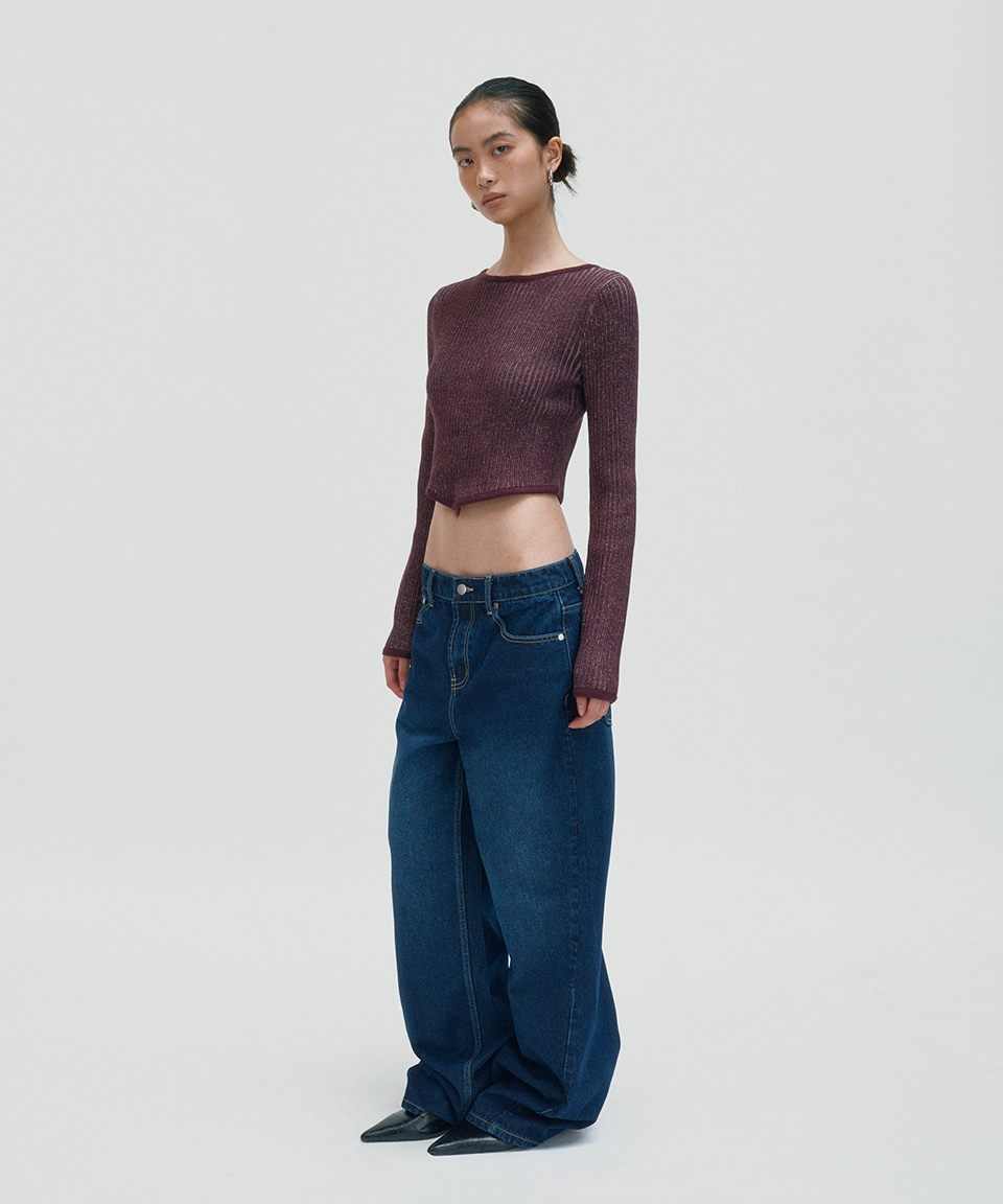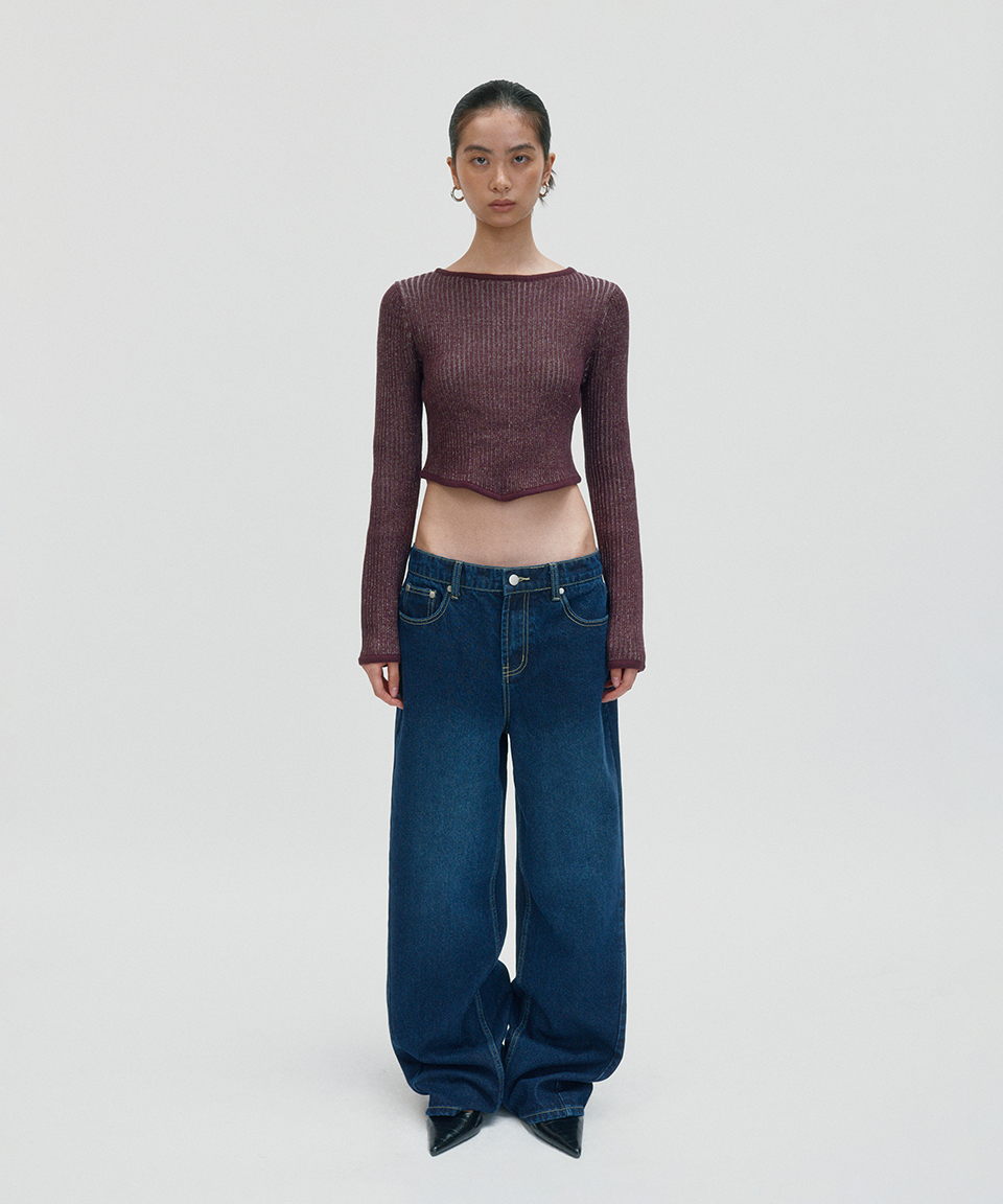 스웨이드 워시드 립 니트 브라운