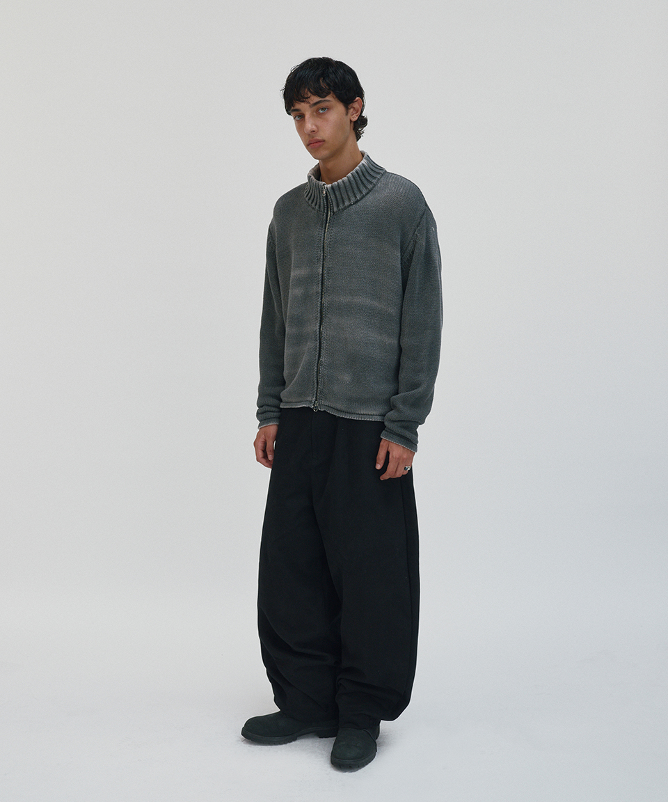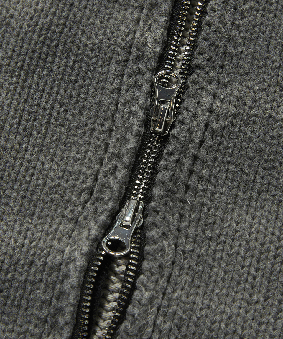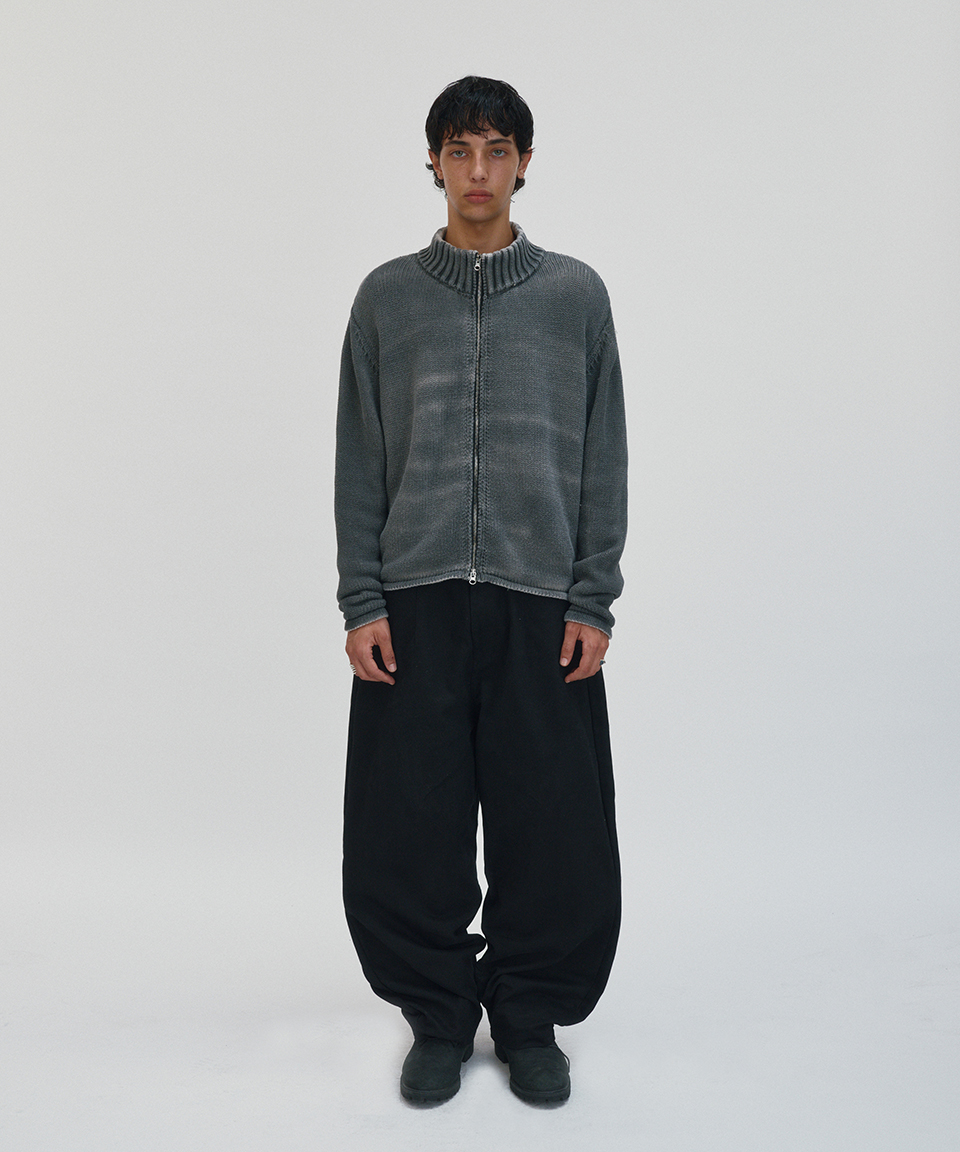 스웨이드 워시드 니트 집업 차콜 그레이