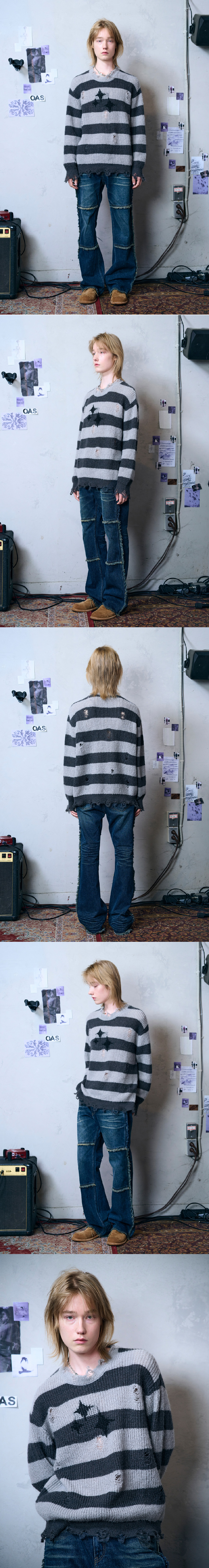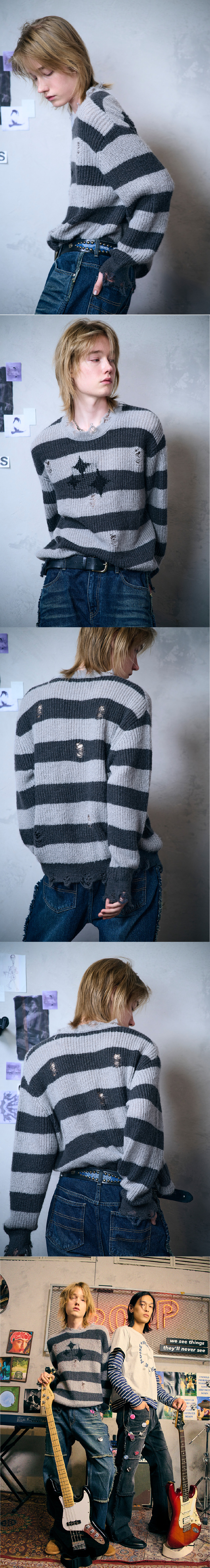 메아 빈티지 스트라이프 울 니트 그레이