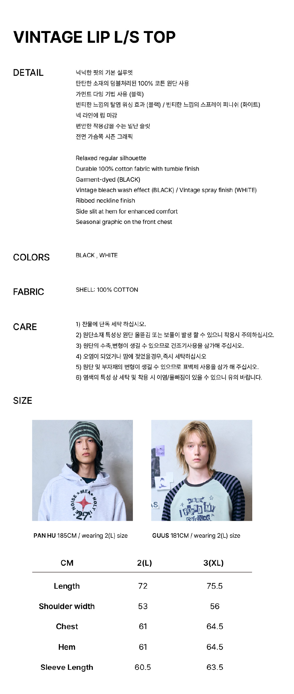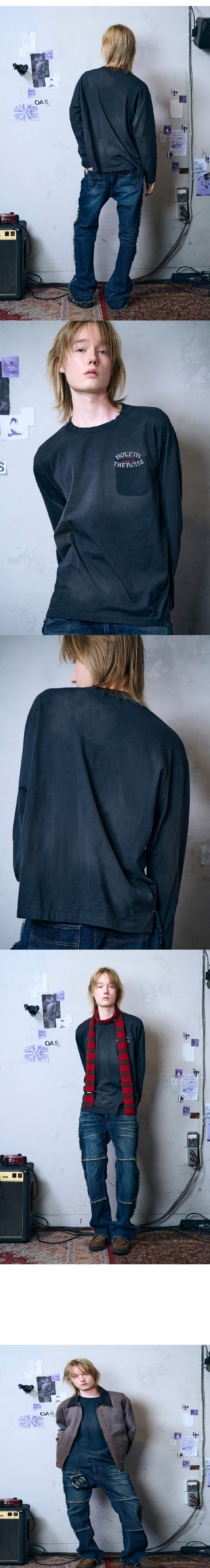 메아 빈티지 립 롱슬리브 탑 블랙