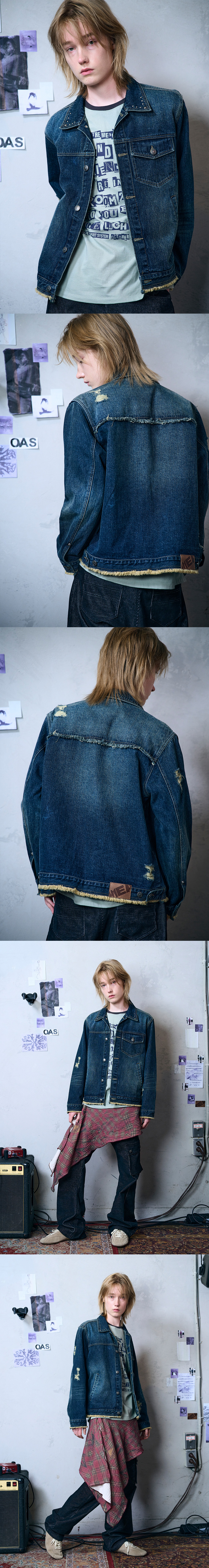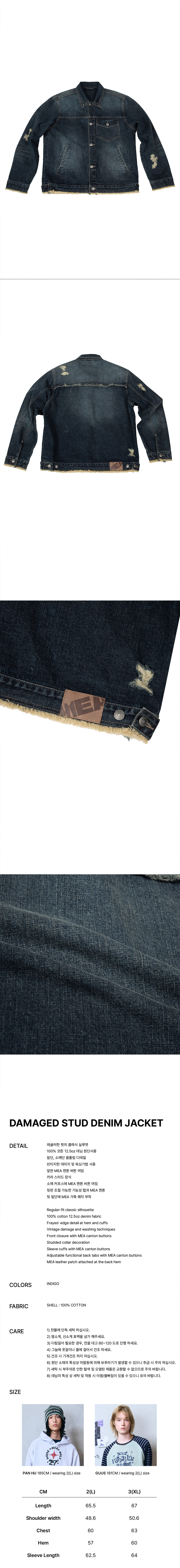 메아 데미지드 스터드 데님 자켓 인디고