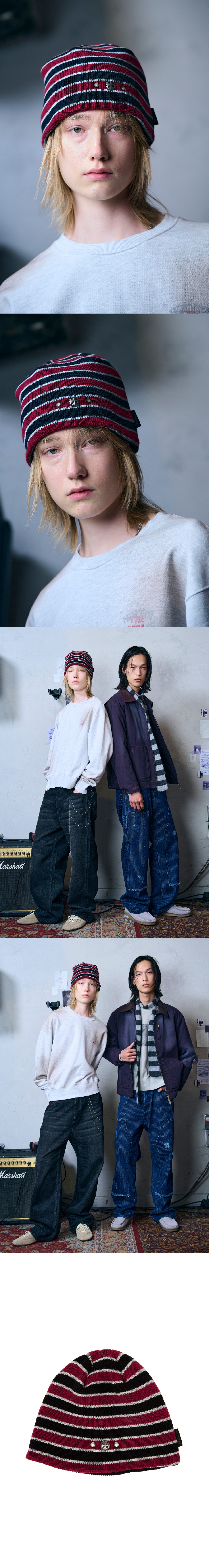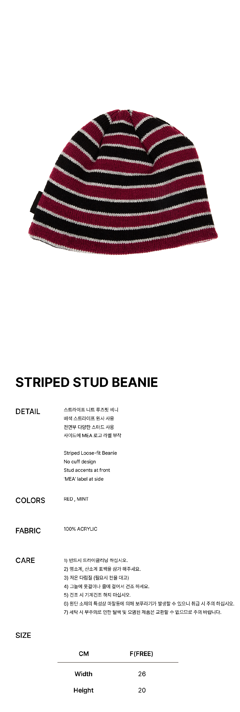 메아 스트라이프 스터드 비니 레드