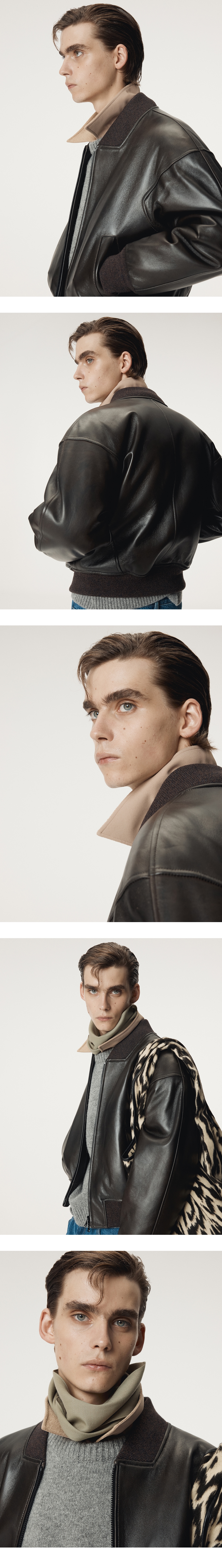 - 볼륨감 있는 실루엣의 숏 기장 레더 점퍼 - 소매와 밑단의 니트 리브 디테일로 안정적이고 편안한 착용감 제공 - 이태리 람포 지퍼를 사용해 부드럽고 견고한 여밈 구현 - 내부 신슐레이트 퀼팅 안감으로 뛰어난 보온성 유지 - LEATHER MADE IN ITALY * 이태리 앤틱 가죽으로 제작되어 사용감에 따라 속 컬러가 드러나는 빈티지 효과가 연출됩니다. 시간이 지날수록 자연스러운 마찰로 표면 코팅이 벗겨지며 고유의 앤틱 무드가 완성됩니다. 동일한 제품이라도 공정 특성상 가죽의 색감과 텍스처가 상이할 수 있습니다.