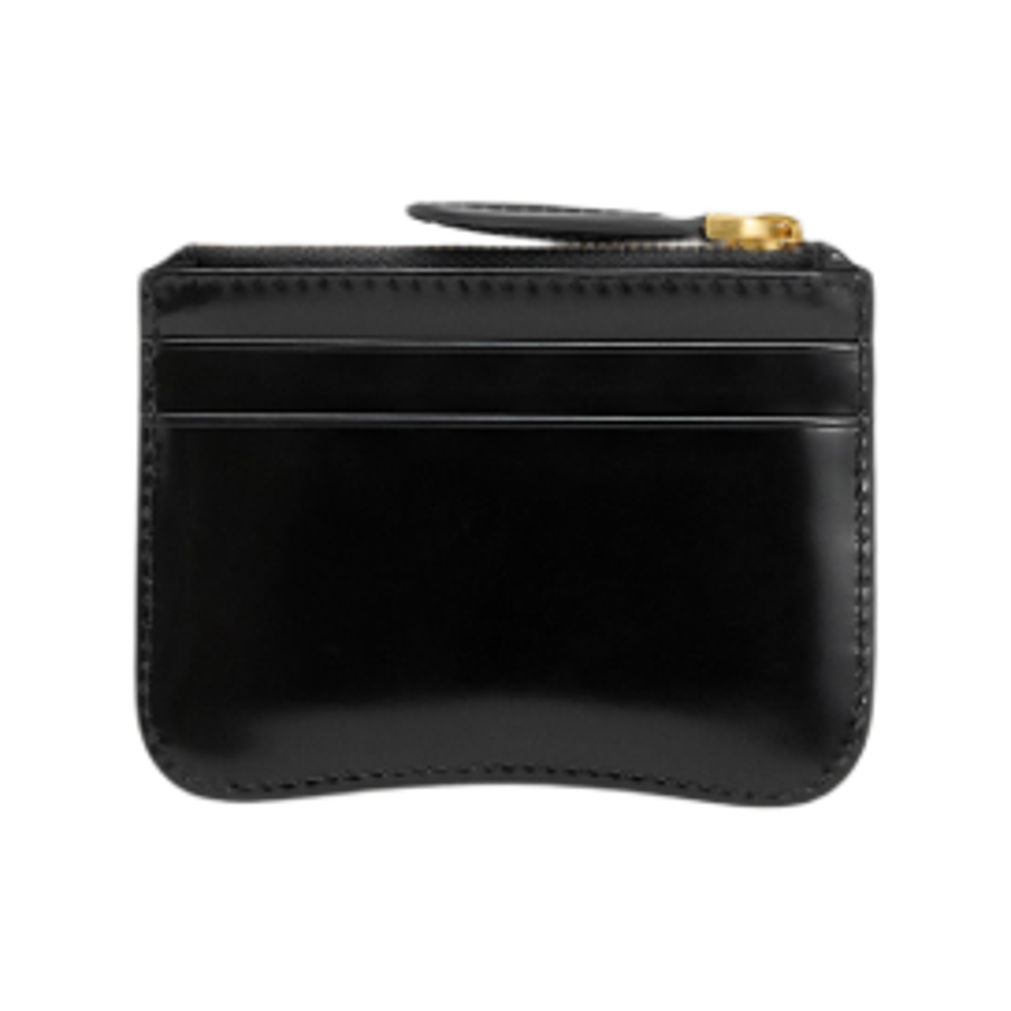 아미 파리 스몰 하트 로고 글레이즈드 레더 지퍼 카드 홀더 블랙 골드