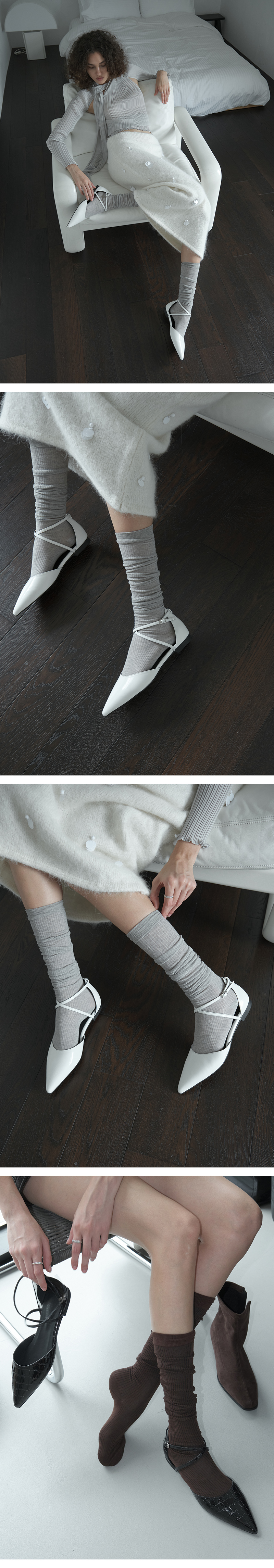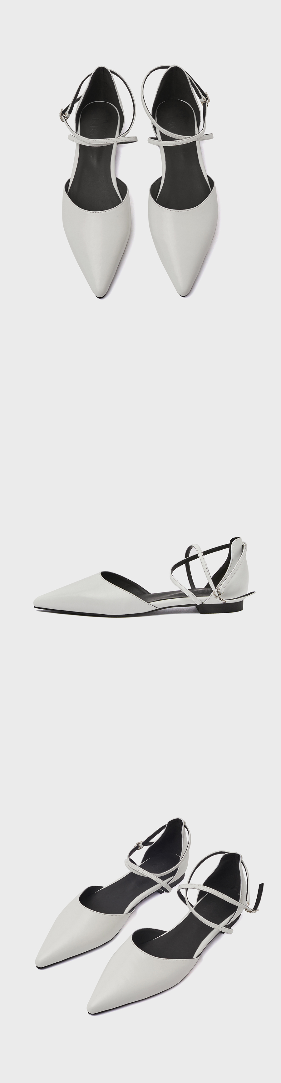 · 간결한 실루엣으로 시즌에 구애받지 않는 플랫슈즈 · 베이직한 색상에 소재로 변주를 주어 취향에 따라 선택 가능한 옵션 · 가볍고 편안한 경량 부자재로 피로감을 덜어낸 착화감 · 전체 라텍스 처리한 인솔(in-sole)로 푹신한 착화감