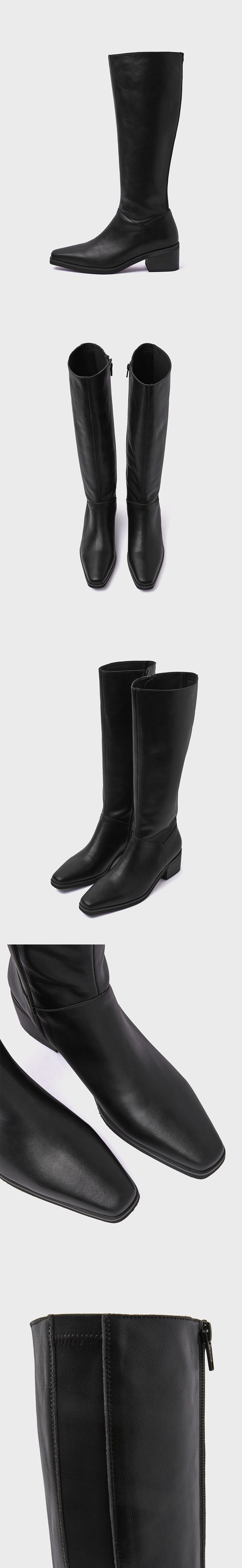 · 뒷축을 신축성있는 네오프렌으로 마감해, 슬림한 실루엣 연출 · 군더더기 없는 스탠다드 핏 롱부츠 라인에 슬림한 쉐입 · 안정감있는 아웃솔과 블럭타입 미들힐 · 더블라텍스 인솔(in-sole)로 피로감을 덜어낸 착화감