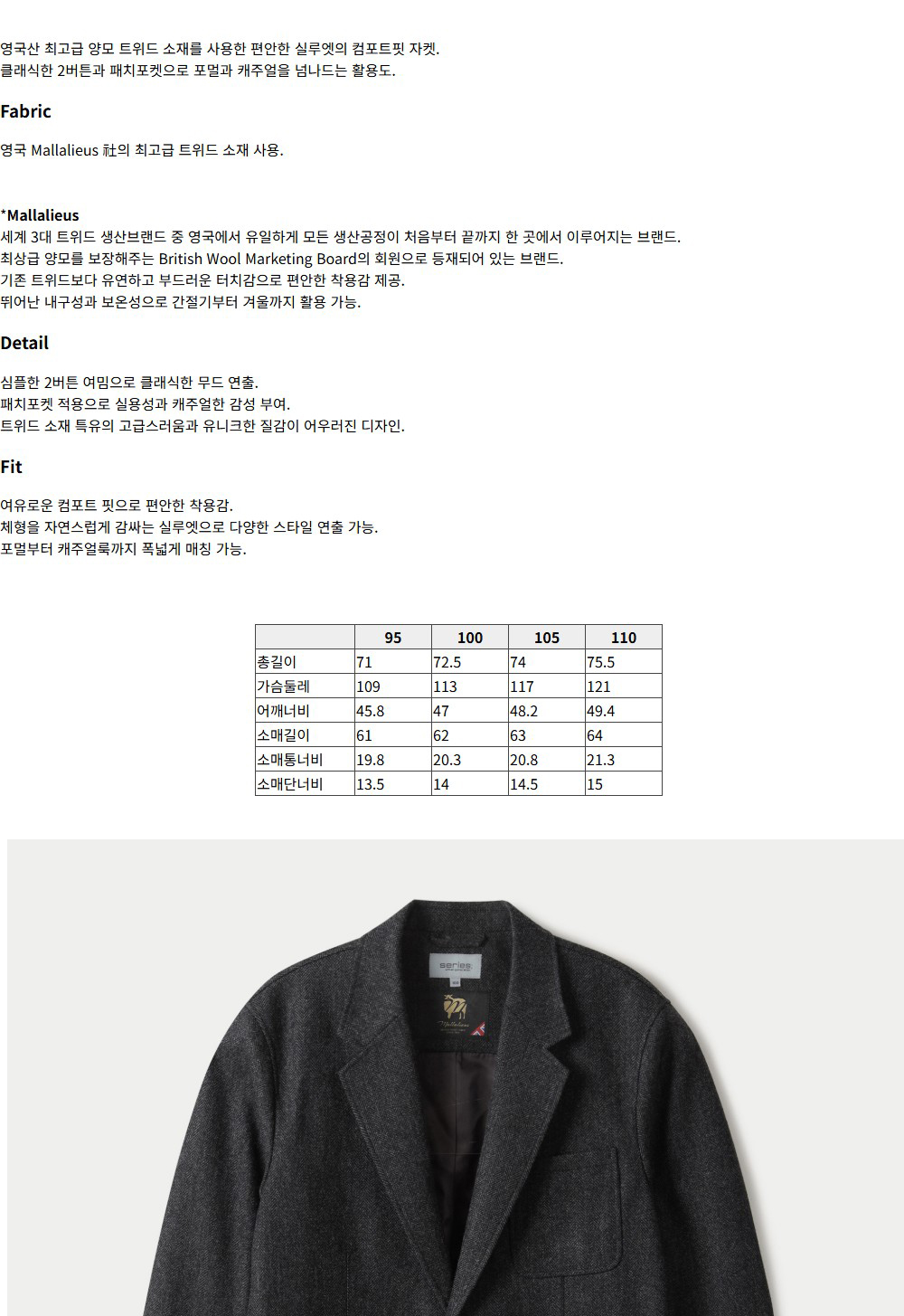 시리즈 말라리우스 헤링본 뉴레귤러 자켓 차콜