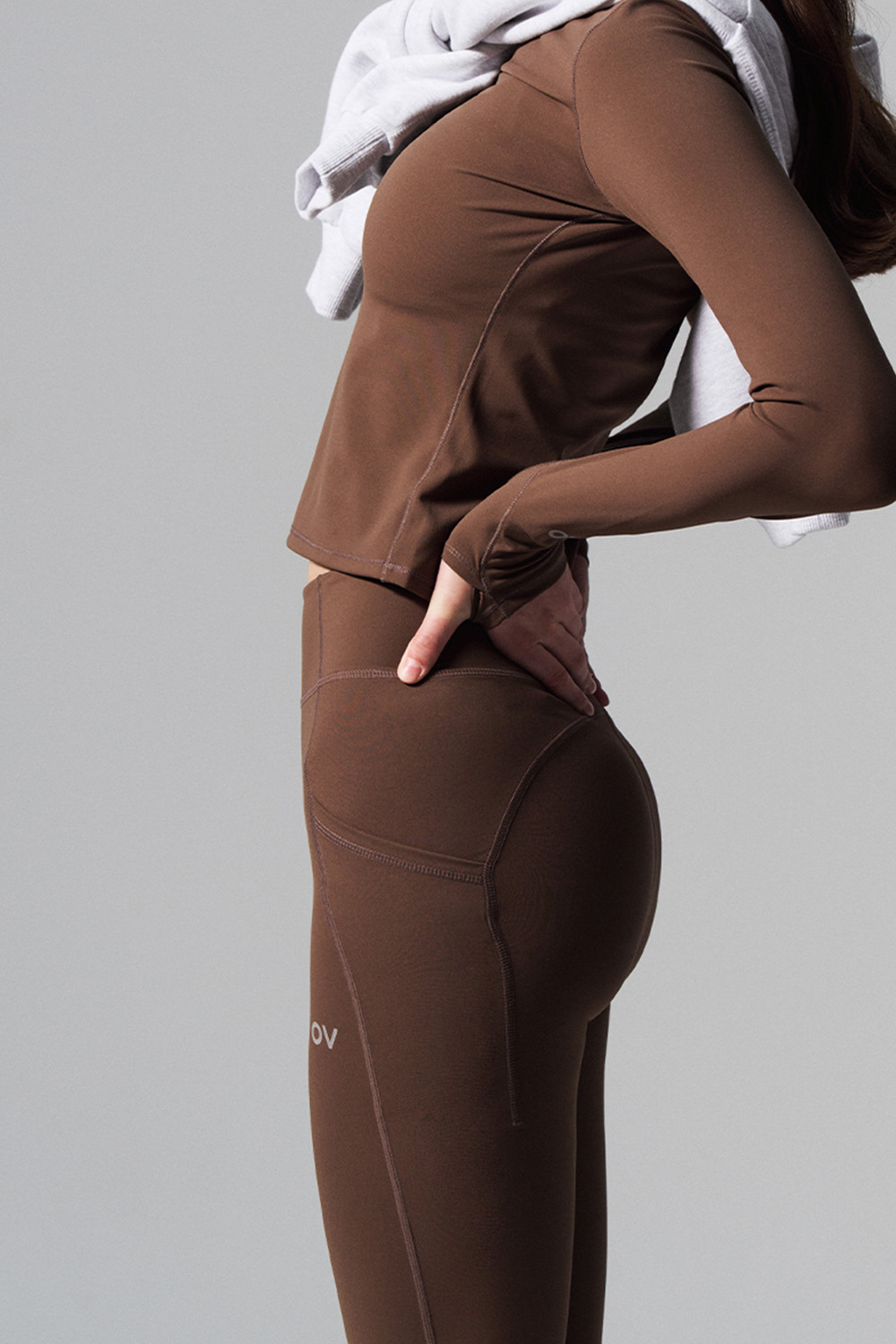 아웃도어보이스 테크놀 오브이 소프트 플렉스 플레어 레깅스 브라운