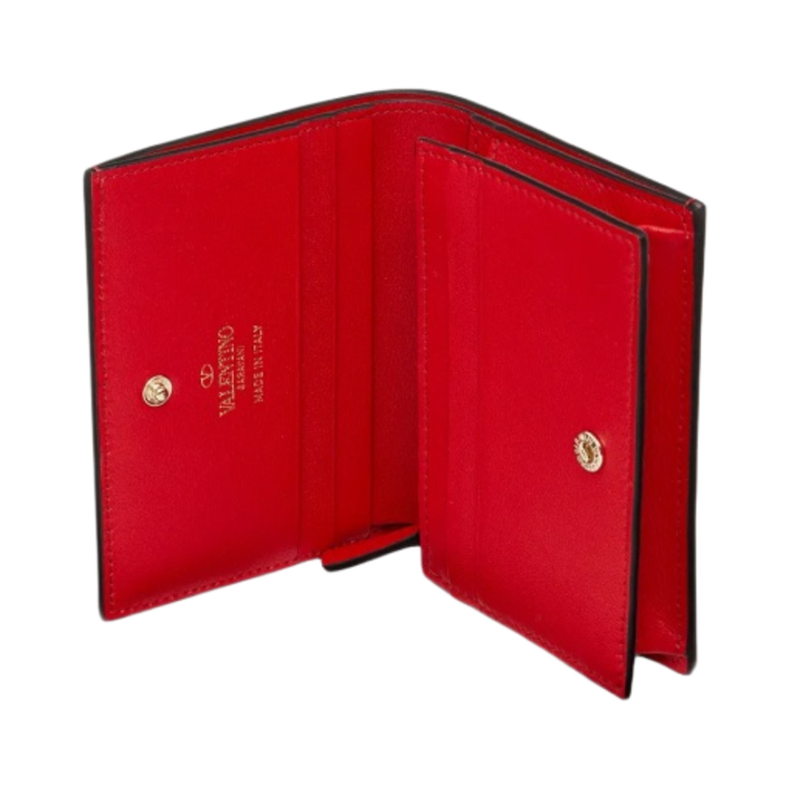 Valentino Rockstud Calfskin Small Wallet Rouge Pur
