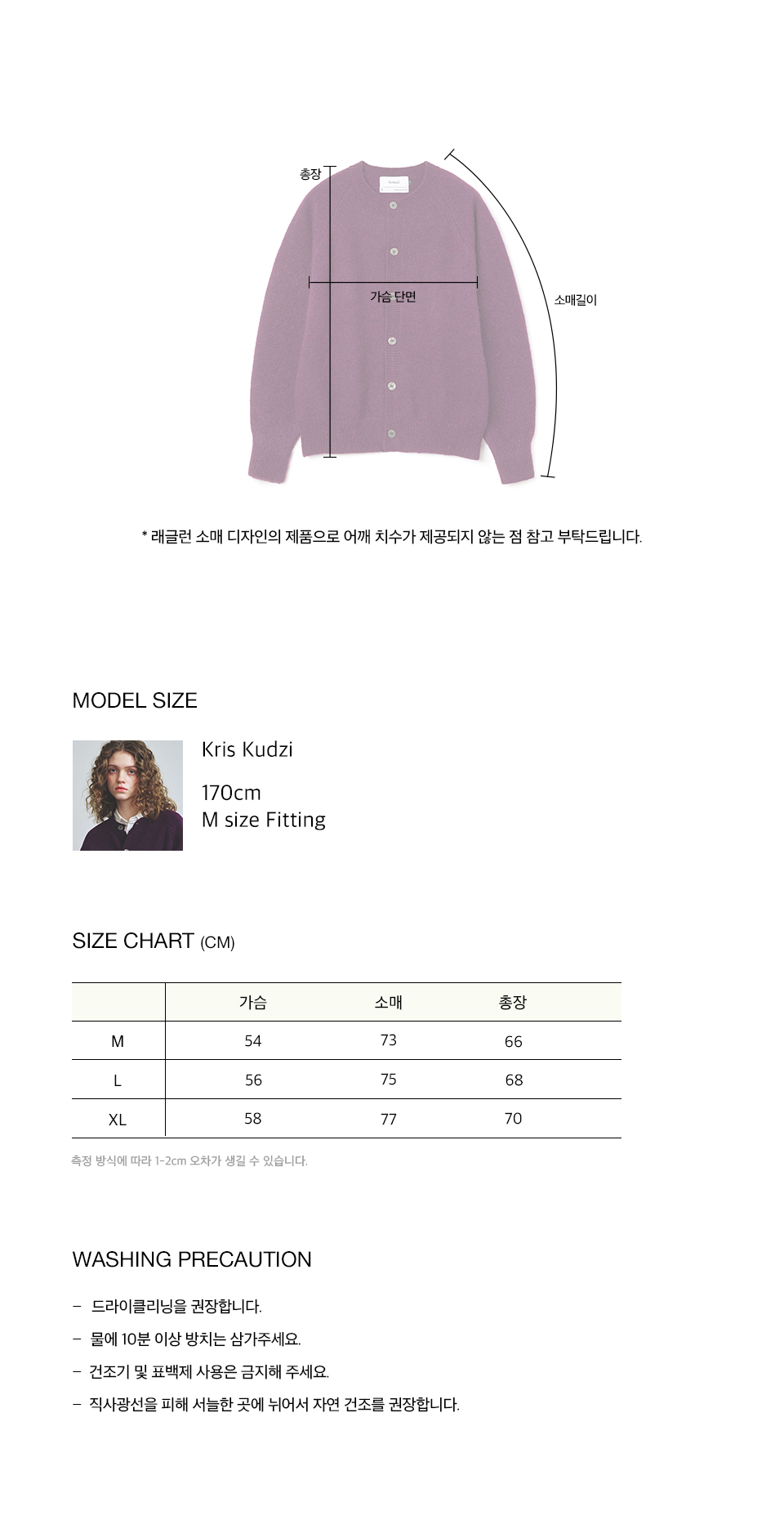 울마크컴퍼니사의 인증을 받은 100% 파인 소프트 셔틀랜드 울 원단을 사용하여 제작된 니트웨어입니다. 양모를 브러쉬 가공 및 실리콘 유연제 처리하여 거친 터치감을 보완하였고 부슬부슬한 헤어감이 느껴지는 양모 특유의 텍스처로 포근하며, 공기층이 잘 형성되어 가벼우면서도 보온성이 뛰어납니다. 다양한 색상의 원사를 믹스하여 오묘하고 고급스러운 느낌을 주고 전체 사시 봉제로 편직하여 더욱 편안하게 착용 가능하며 오픈 클로징이 가능한 소매의 단추 디테일로 유니크한 무드를 더했습니다. 베이직한 컬러와 포인트 컬러가 함께 구성되어 다양한 스타일링에 활용하기 좋으며 자연스럽게 떨어지는 세미 오버 실루엣으로 데님팬츠, 코튼 팬츠 등 여러 하의와 매치하여 멋스럽게 연출 가능한 제품입니다. * 셔틀랜드 울 특유의 소재감으로 인해 까끌까끌함을 느낄 수 있어 이너와 함께 착용을 권장합니다.