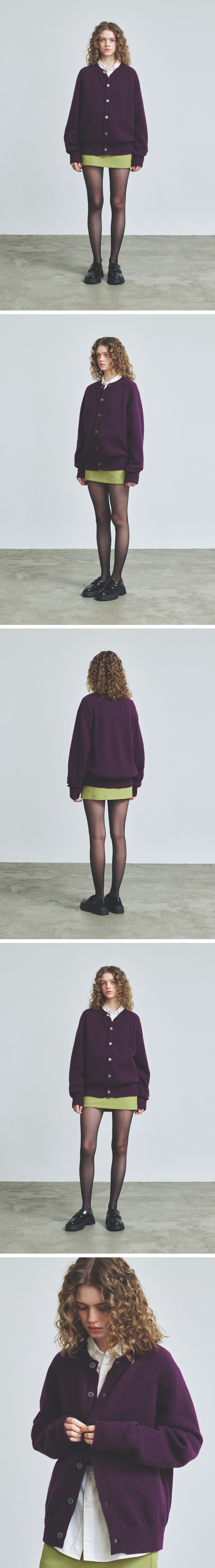 니티드 쉐기독 울 100% 라운드 가디건 퍼플
