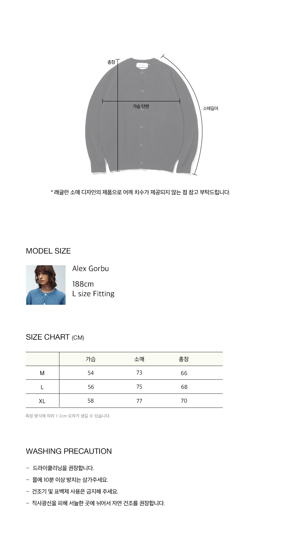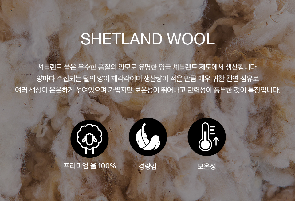 울마크컴퍼니사의 인증을 받은 100% 파인 소프트 셔틀랜드 울 원단을 사용하여 제작된 니트웨어입니다. 양모를 브러쉬 가공 및 실리콘 유연제 처리하여 거친 터치감을 보완하였고 부슬부슬한 헤어감이 느껴지는 양모 특유의 텍스처로 포근하며, 공기층이 잘 형성되어 가벼우면서도 보온성이 뛰어납니다. 다양한 색상의 원사를 믹스하여 오묘하고 고급스러운 느낌을 주고 전체 사시 봉제로 편직하여 더욱 편안하게 착용 가능하며 오픈 클로징이 가능한 소매의 단추 디테일로 유니크한 무드를 더했습니다. 베이직한 컬러와 포인트 컬러가 함께 구성되어 다양한 스타일링에 활용하기 좋으며 자연스럽게 떨어지는 세미 오버 실루엣으로 데님팬츠, 코튼 팬츠 등 여러 하의와 매치하여 멋스럽게 연출 가능한 제품입니다. * 셔틀랜드 울 특유의 소재감으로 인해 까끌까끌함을 느낄 수 있어 이너와 함께 착용을 권장합니다.