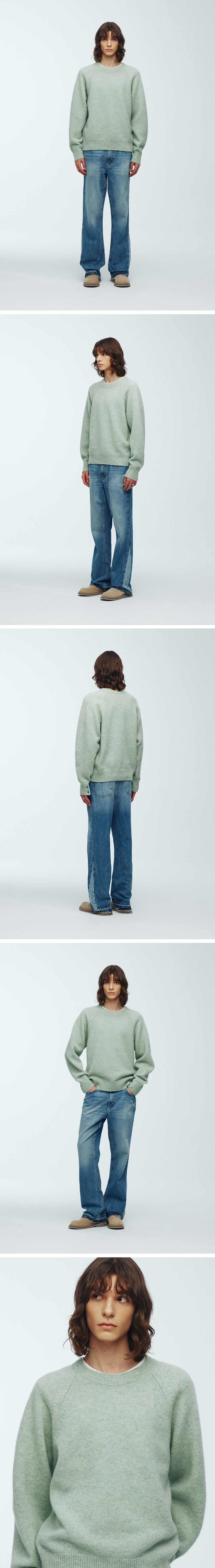 니티드 쉐기독 울 100% 라운드 니트 민트