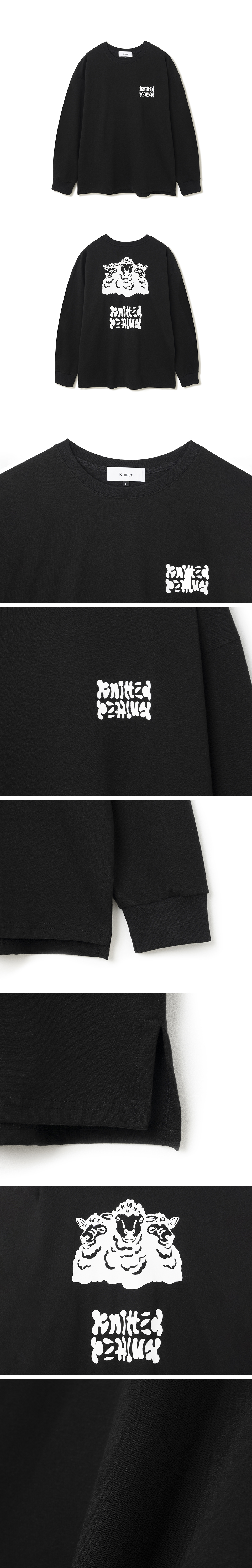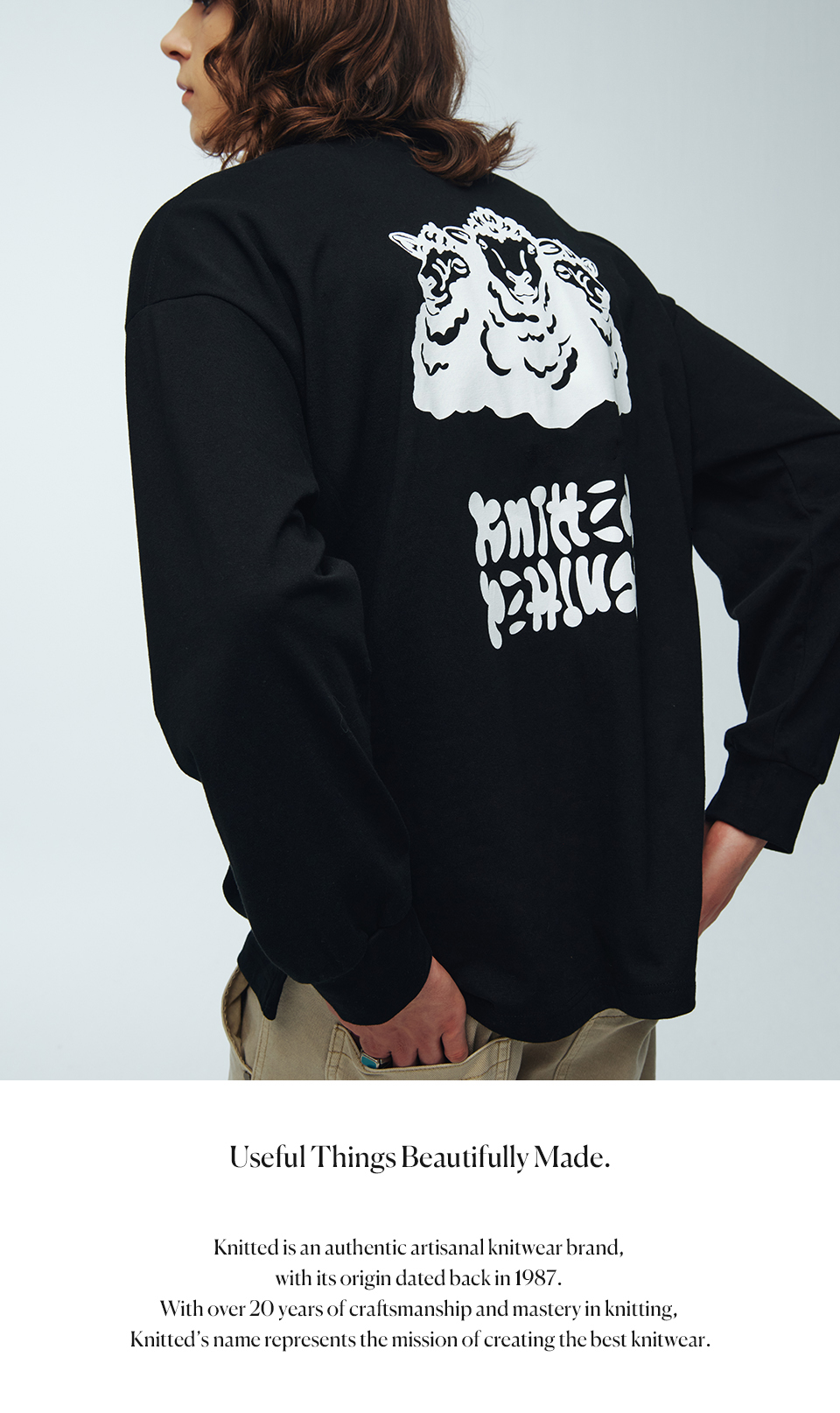 니티드 그래픽 롱 슬리브 티셔츠 블랙