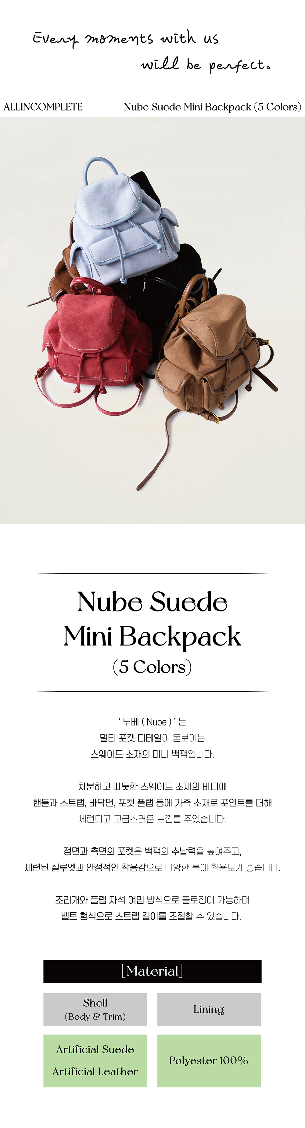 올인컴플리트 누베 스웨이드 미니 백팩 카멜