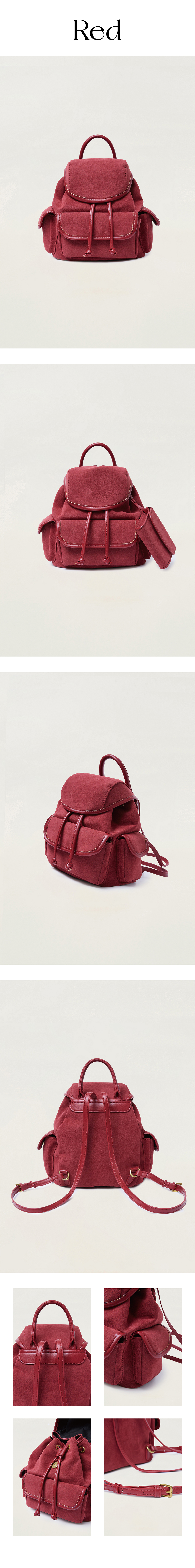 올인컴플리트 누베 스웨이드 미니 백팩 레드
