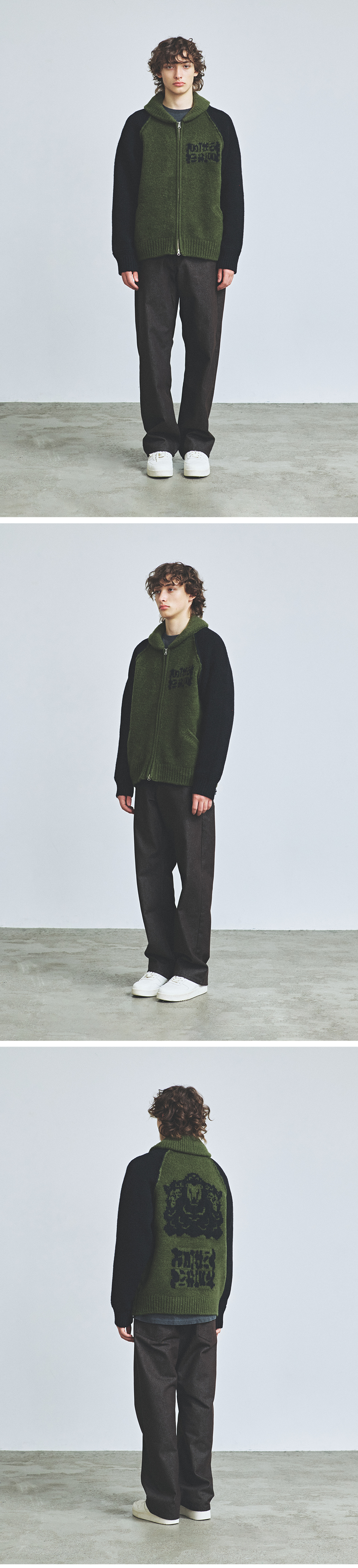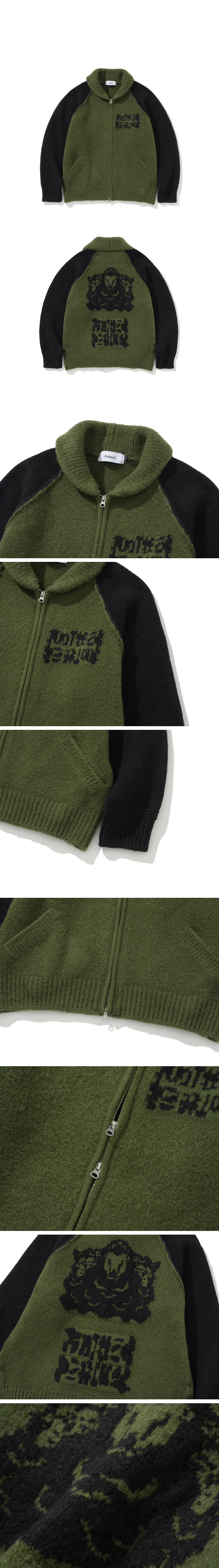 니티드 벌키 울 스타디움 집업 카키 블랙