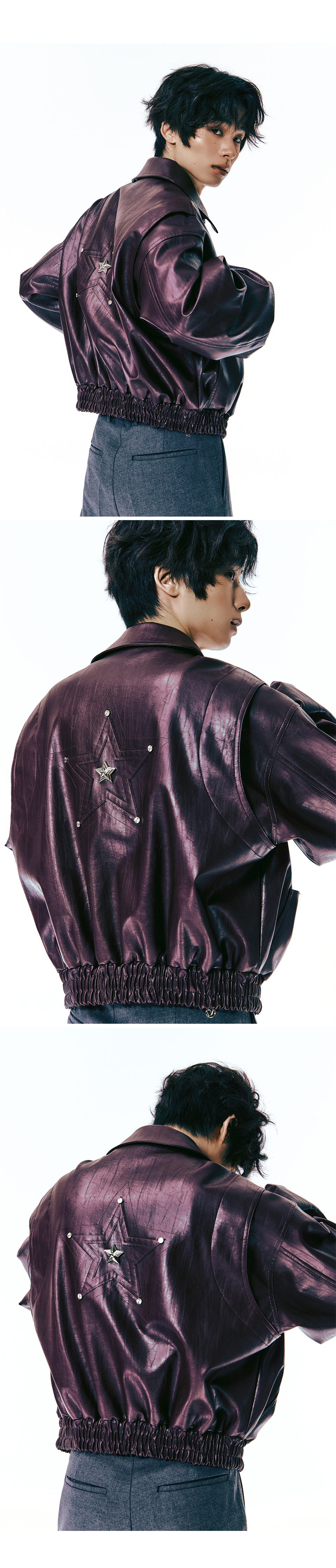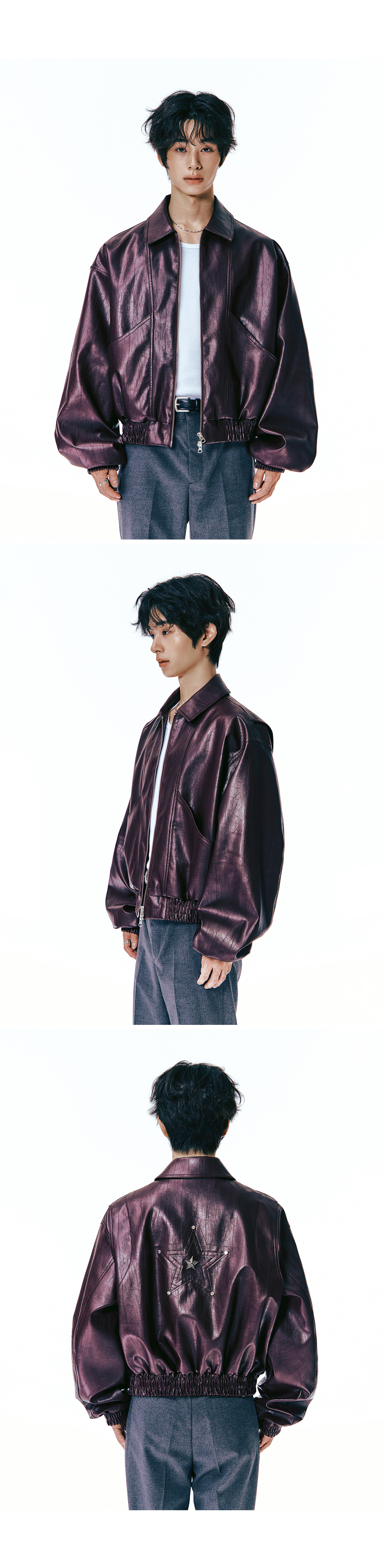 랜 아카이브 0079 스타 스터드 레더 블루종 - 와인
