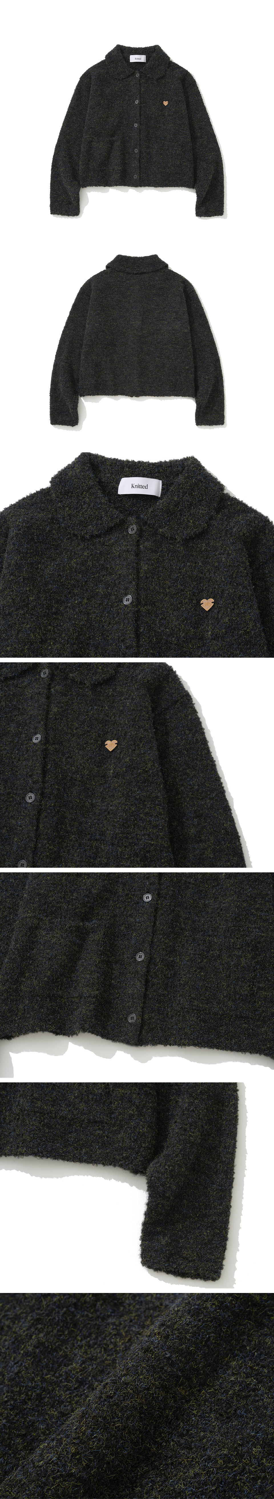 Knitted W Boucle Collar Crop Cardigan Dark Navy