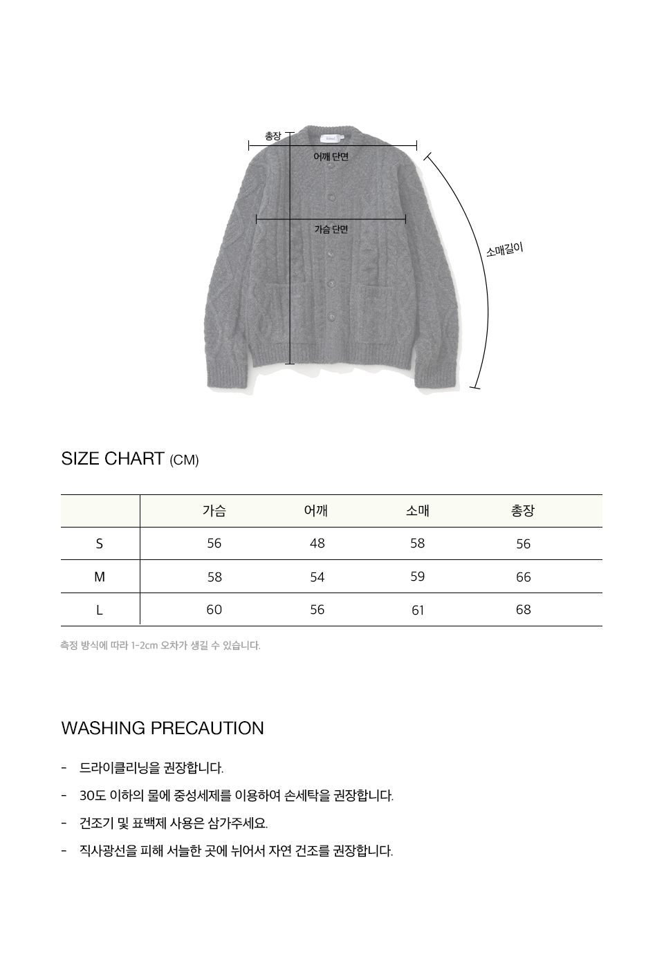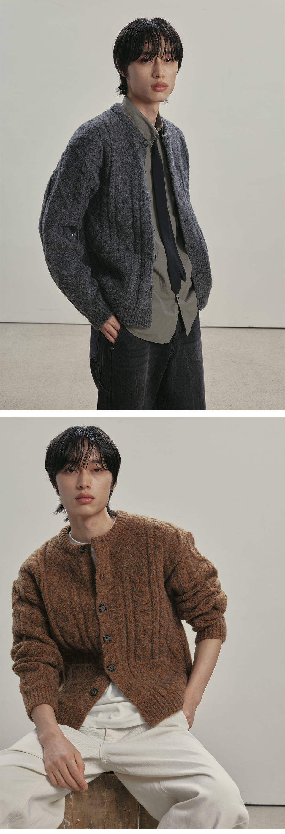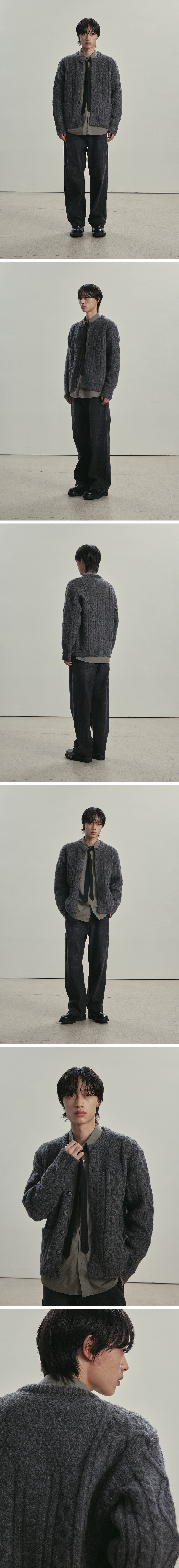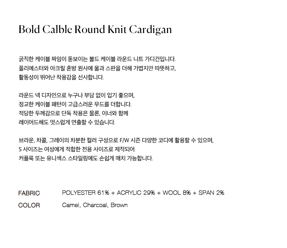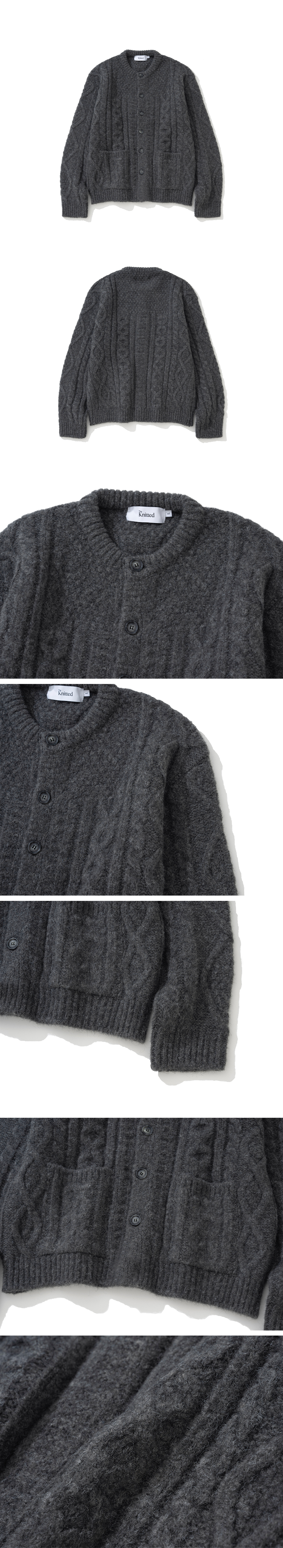 니티드 볼드 케이블 라운드 니트 가디건 차콜