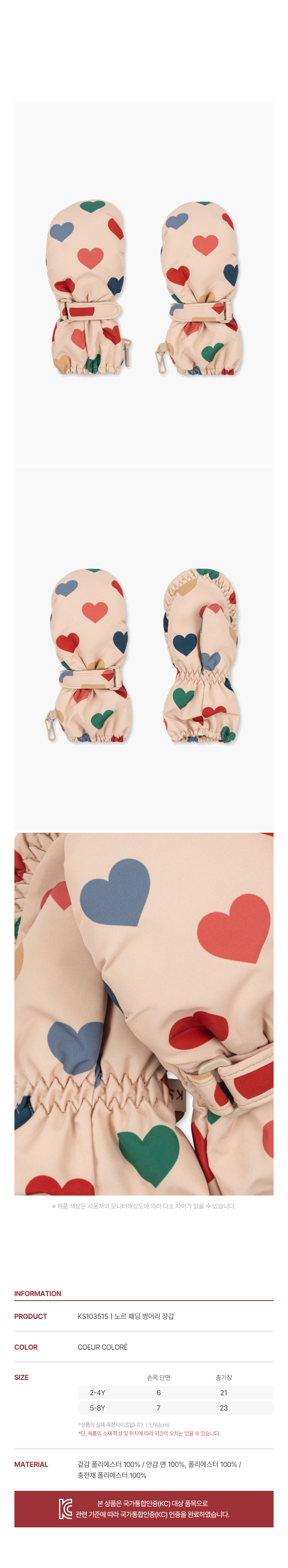 콩제슬래드 노르 패딩 벙어리 장갑 하트 멀티