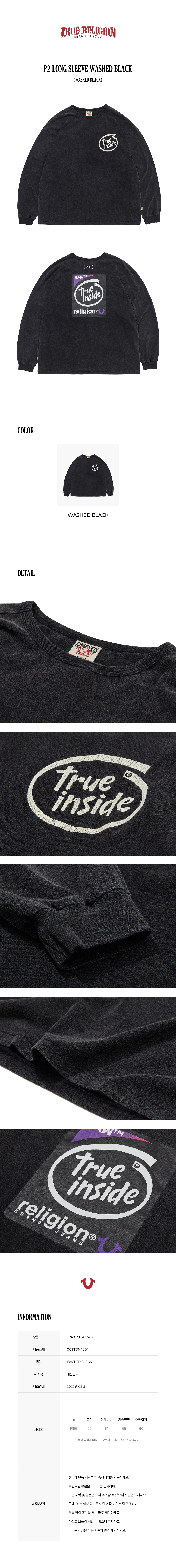 트루릴리젼 x 오네이타 트루 인사이드 롱 슬리브 워시드 블랙