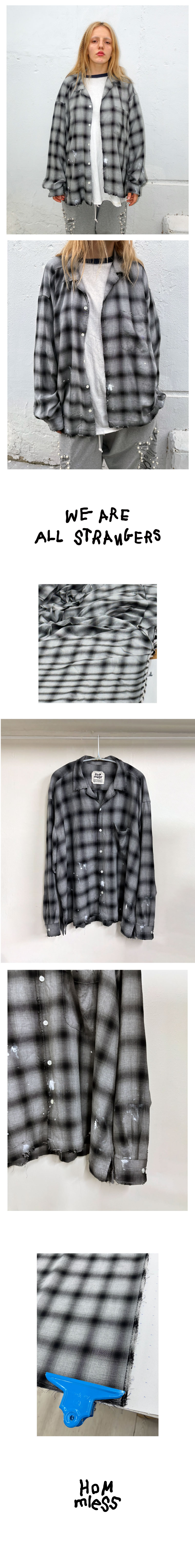 홈리스 레이온 오픈 카라 체크 셔츠 블랙