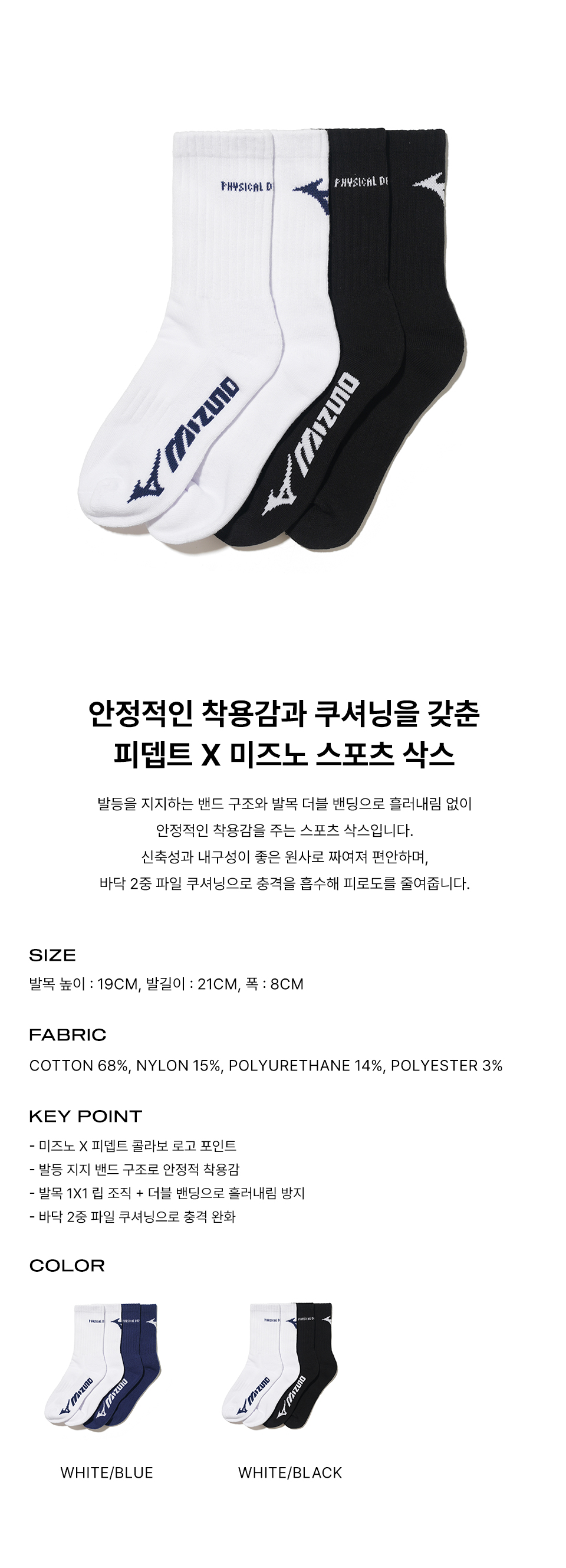[2PACK] 피뎁트 X 미즈노 로고 양말 화이트/블랙