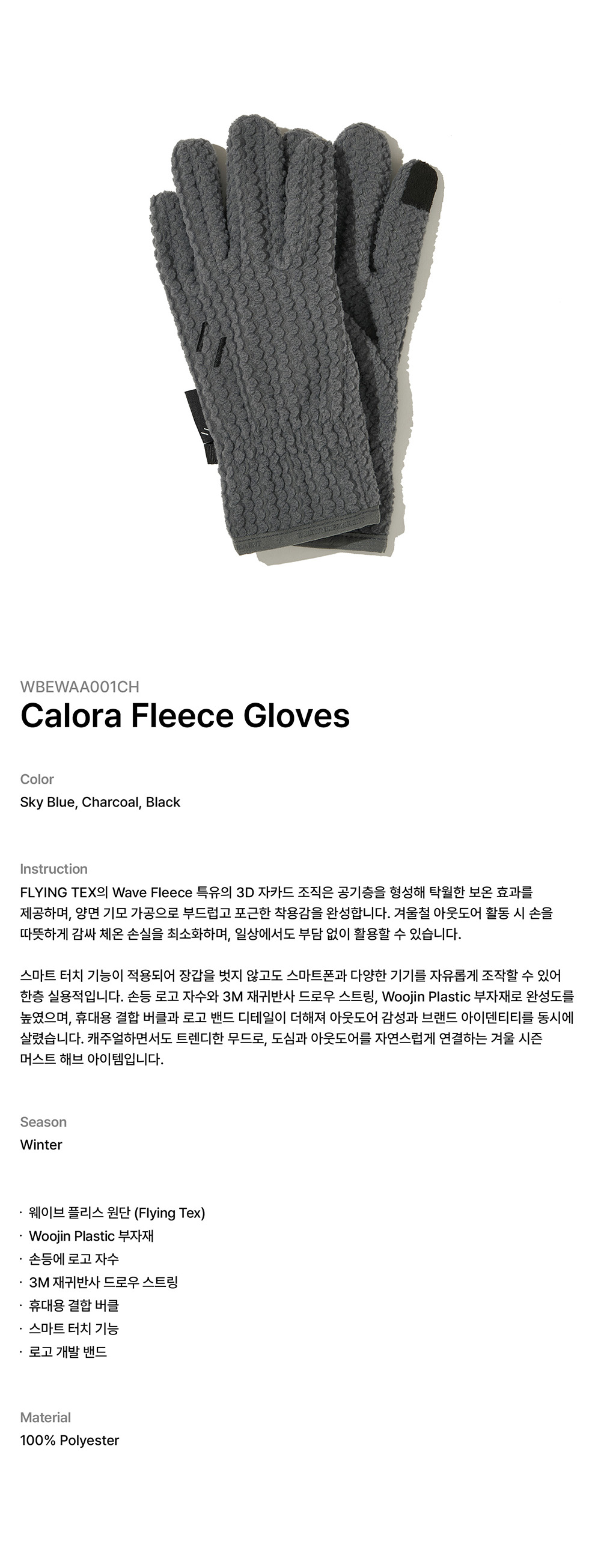 웰터 익스페리먼트 칼로라 플리스 글러브 차콜