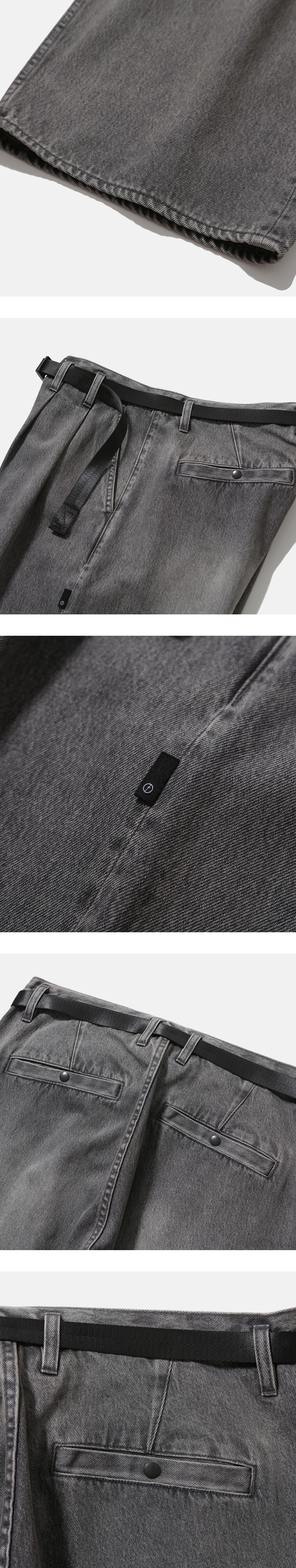 와이드 한 실루엣이 돋보이는 벨트가 달린 데님 팬츠 · 와이드 한 오버사이즈 실루엣. · 11온즈의 데님 원단 사용. · 자석이 부착된 버클을 사용한 탈부착이 가능한 벨트. · 허리 부분 턱과 다트를 넣어 편안한 착용감과 풍성한 실루엣 연출. · 지퍼 플라이 사양. · 스냅 버튼이 부착되어 있는 뒤 주머니 사양. · 사이드 심 부분 모이프 심볼 포인트 라벨 부착. *데님 직조 방법에 의해 아랫부분으로 갈수록 원단이 자연스럽게 뒤틀리는 현상이 있을 수 있습니다.