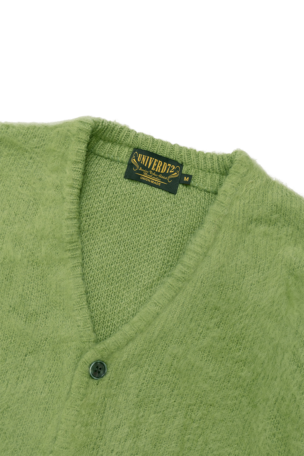 Univerd72 22326 Mohair Touch Cardican - Green UNIVERD72 스테디셀러 모헤어 터치 가디건입니다. 프론트의 쉘버튼과 양 사이드의 포켓이 특징입니다. * Acrylic 100% * 빛에 의한 제품의 색감 차이가 존재 할 수 있습니다. * Made in China