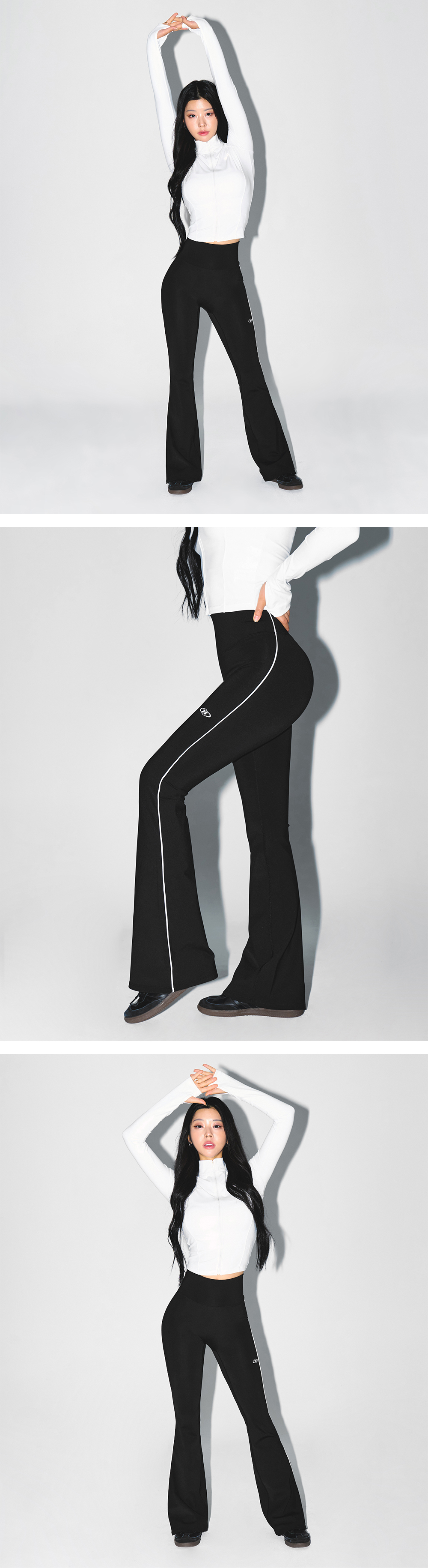 [DETAILS] * W 파이핑 플리스 부츠컷 레깅스 - 고신축 나일론 하이게이지 기모 원단 - 기모 소재로 보온성 강화 - 파이핑 디테일 - 부츠컷 실루엣 Material : NYLON 76% POLYURETHANE 24% Fitting : GY 1 Size, 165cm, 53kg