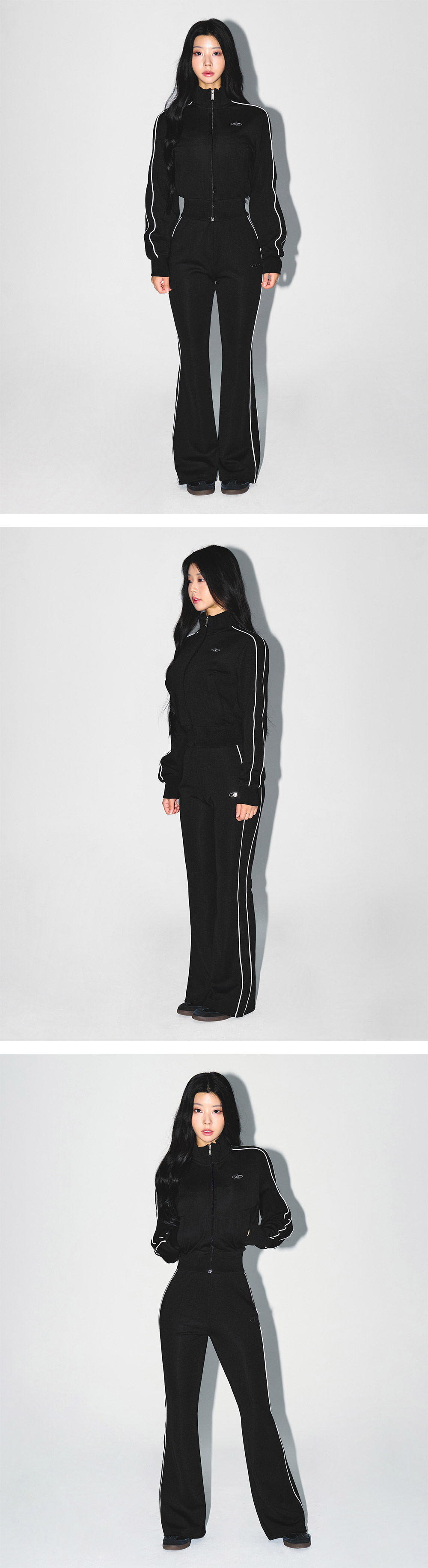 [DETAILS] * W 파이핑 라인 집업 자켓 - 고신축 폴리 레이온 스판 원단 - B 로고 포인트 - 지퍼 포켓 - 파이핑 디테일 - 슬림핏 Material : POLYESTER 85% RAYON 10% POLYURETHANE 5% Fitting : GY 1 Size, 165cm, 53kg