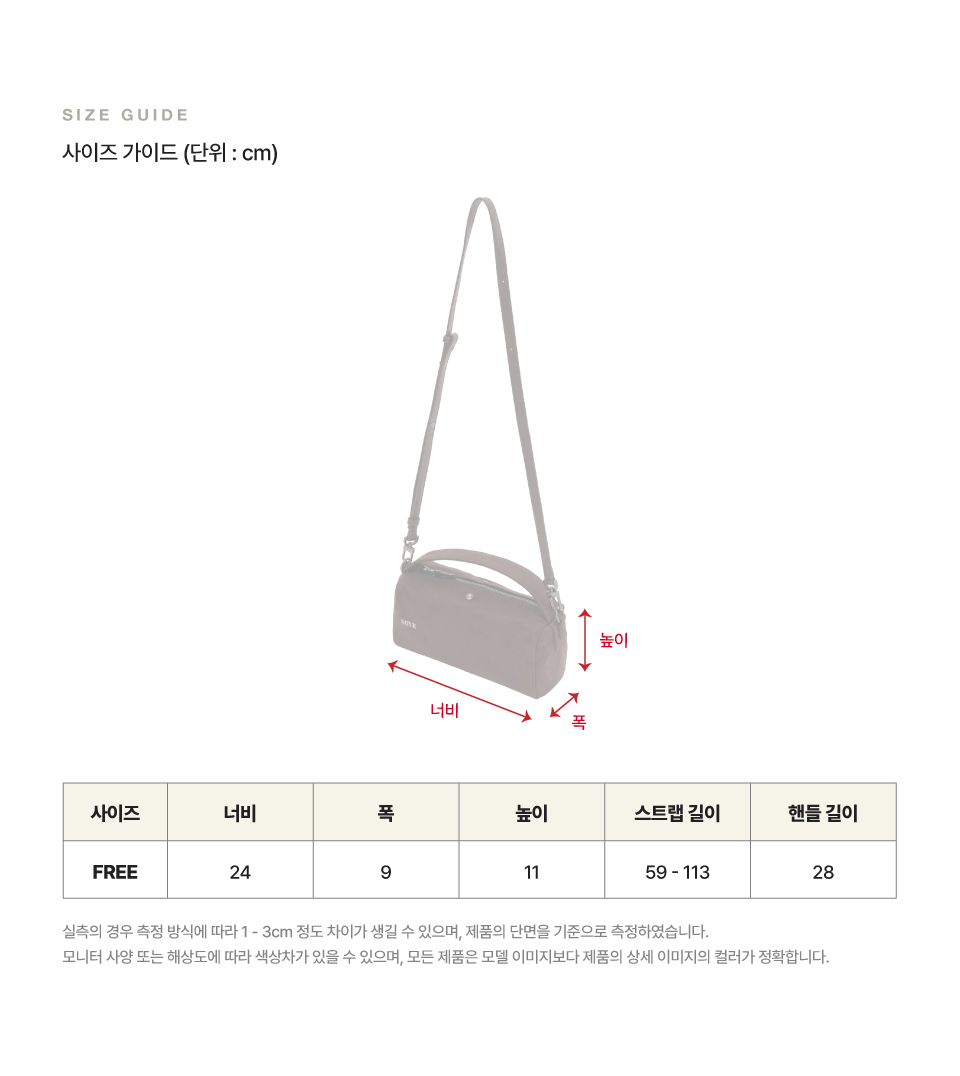 측정 방법에 따라 사이즈에 일부 오차가 있을 수 있습니다.