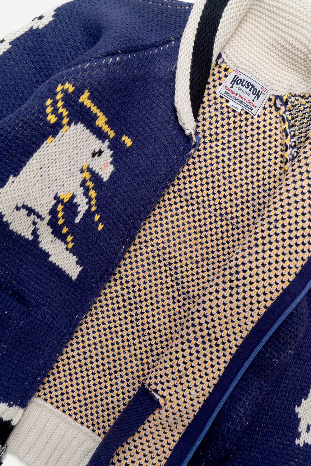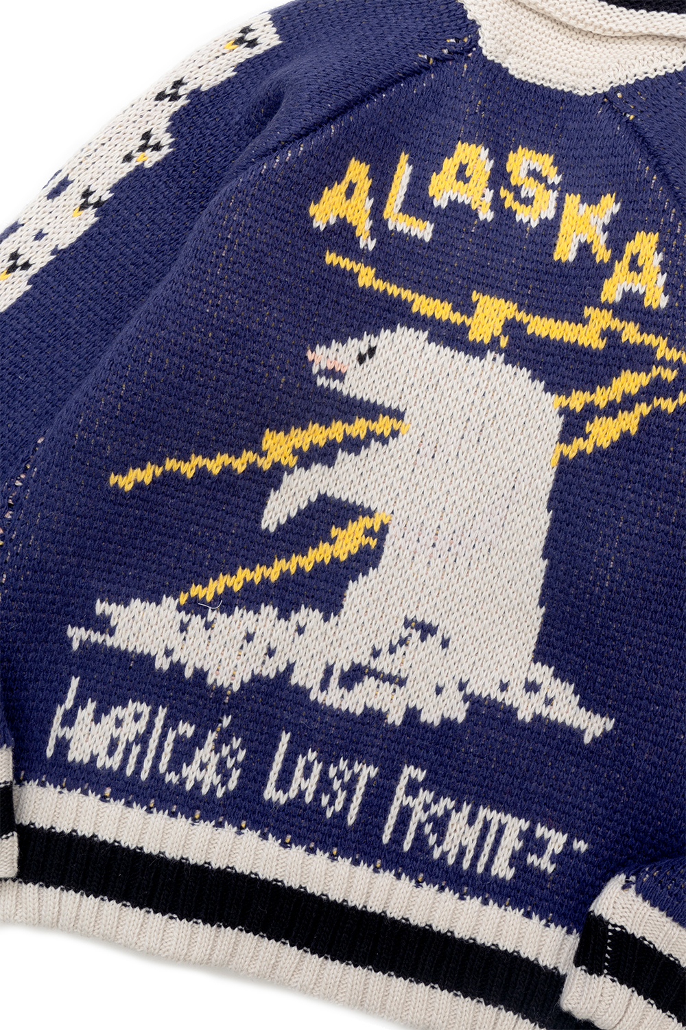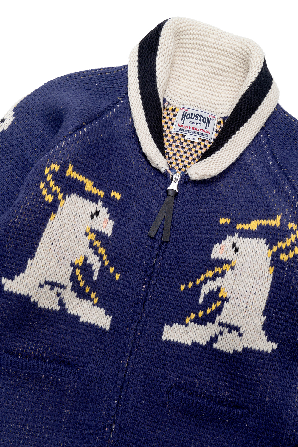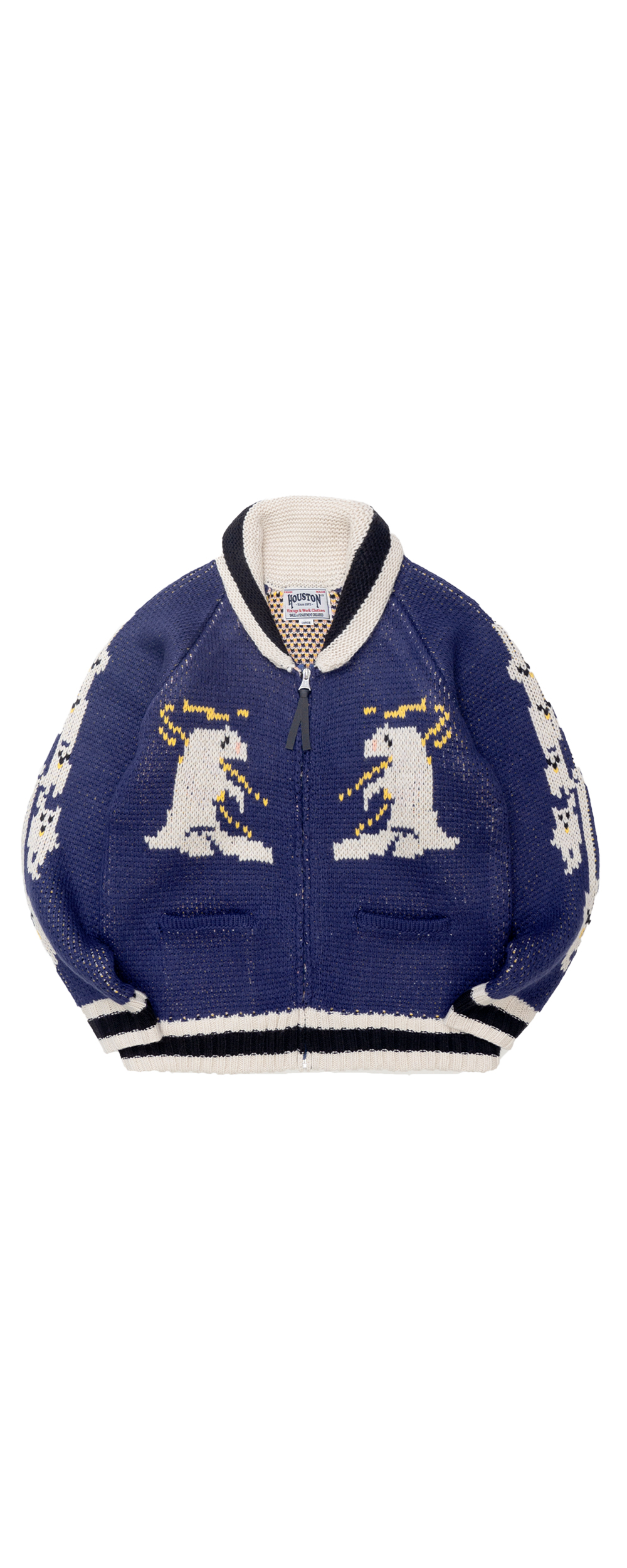Houston Japan Souvenir Cowichan Sweater BEAR Blue 22317