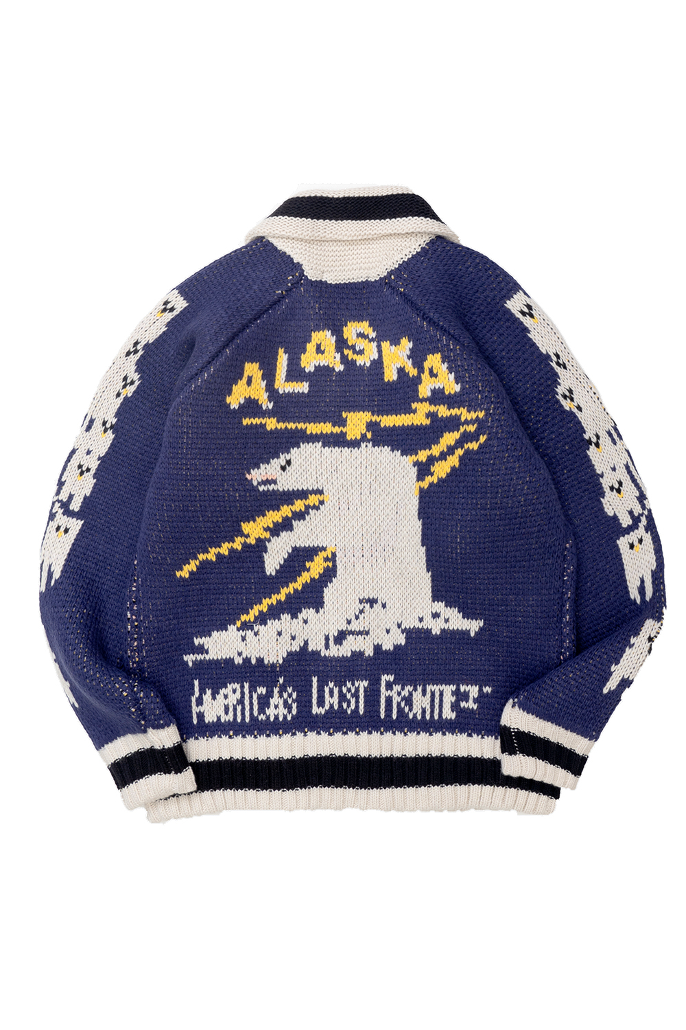 ouston Japan 22317 Souvenir Cowichan Sweater (BEAR) - Blue FW 시즌 HOUSTON만의 스테디 컬렉션 코위찬 가디건입니다. 스카잔 시리즈의 대표적인 알래스카, 곰 무늬를 디자인한 것이 특징입니다. 여유 있는 실루엣으로 제작된 릴렉스 핏으로 체형에 크게 구애받지 않고 착용 가능합니다. 적당한 기장감으로 이너를 활용한 다양한 연출이 가능하며, 소매 단과 밑단에는 탄력성 있는 리브를 사용하여 내구성을 더했습니다. *Arcylic 80% Wool 20% * 빛에 의한 제품의 색감 차이가 존재 할 수 있습니다. * Made in China