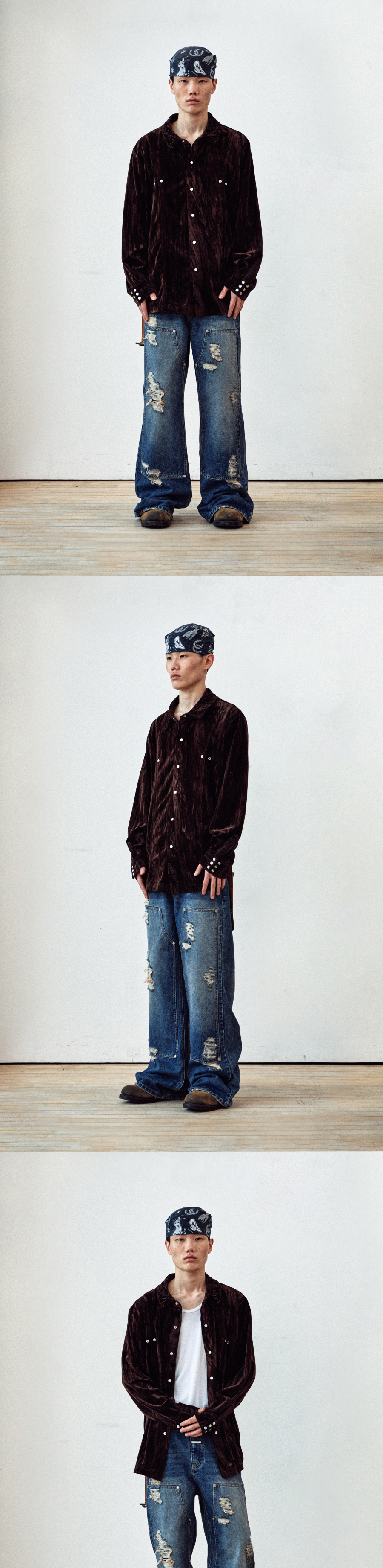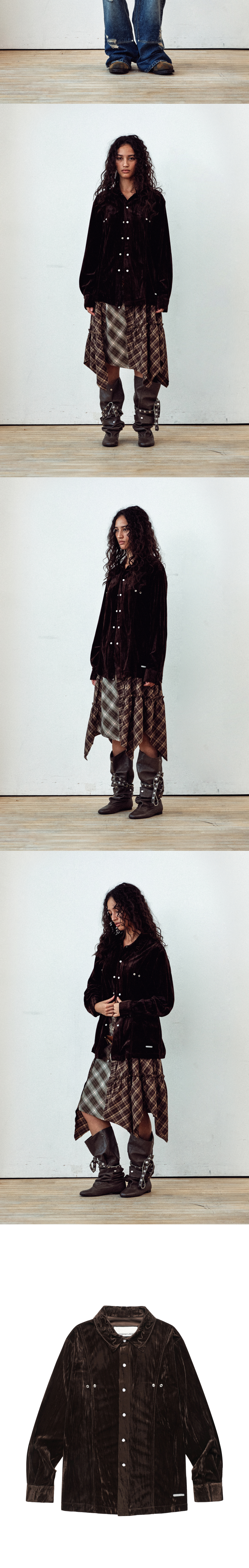 더바이닐하우스 엠브로이더리 벨루아 셔츠 브라운