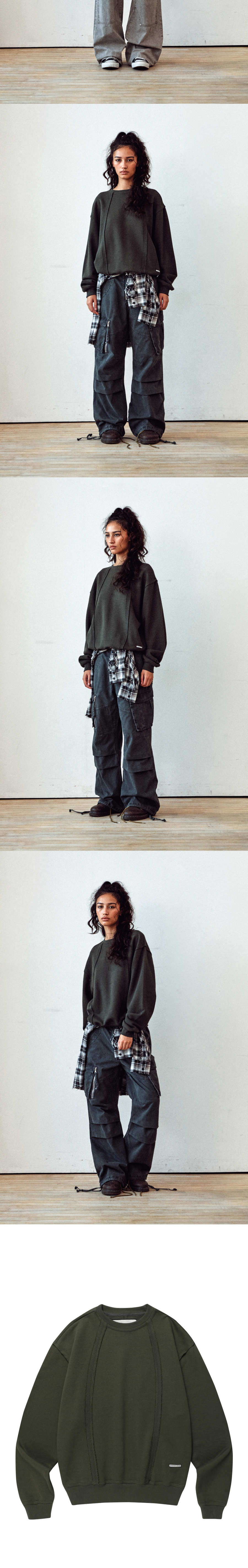 Thevinylhouse Cut-Off Line Sweatshirts Khaki