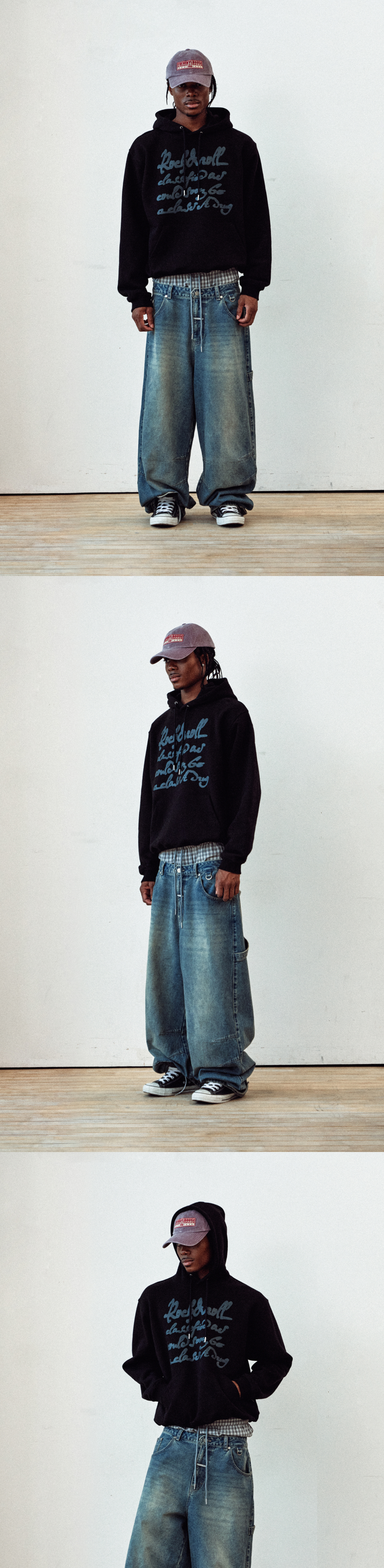 더바이닐하우스 커시브 라이팅 타이포 후디 블랙