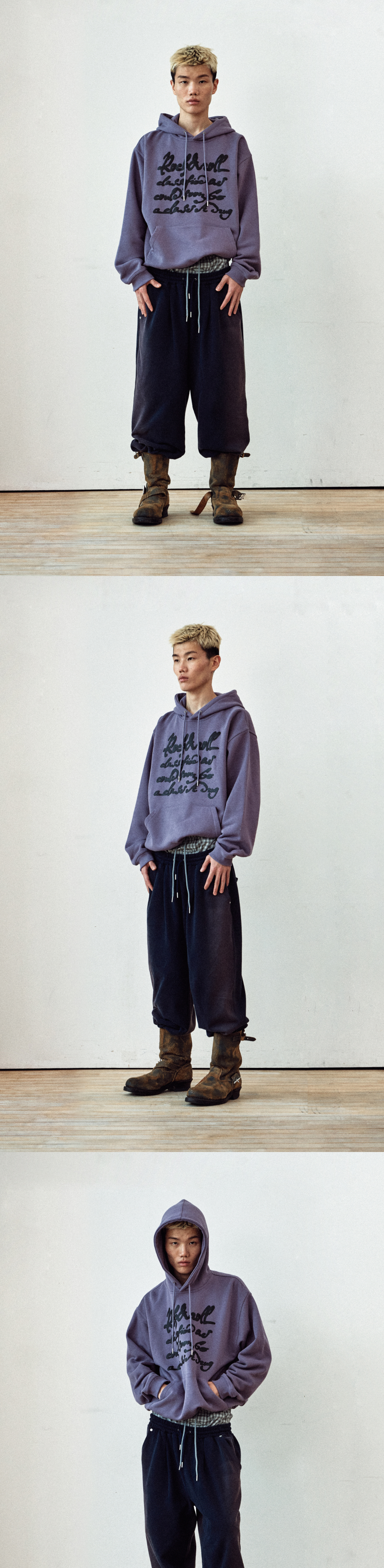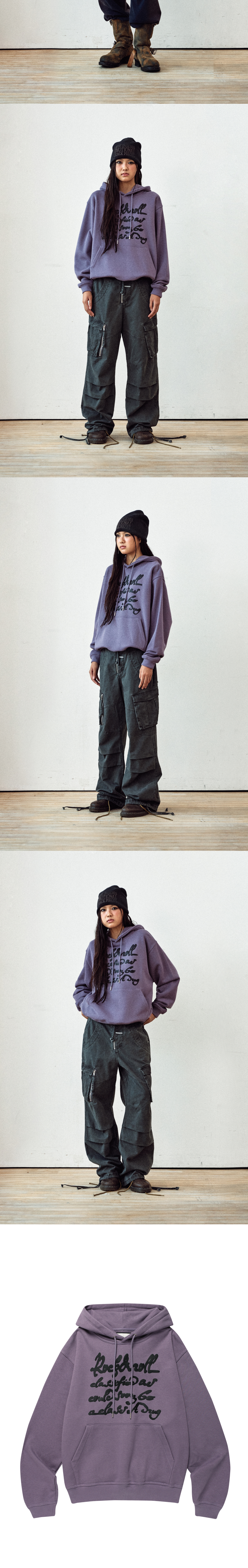 더바이닐하우스 커시브 라이팅 타이포 후디 퍼플