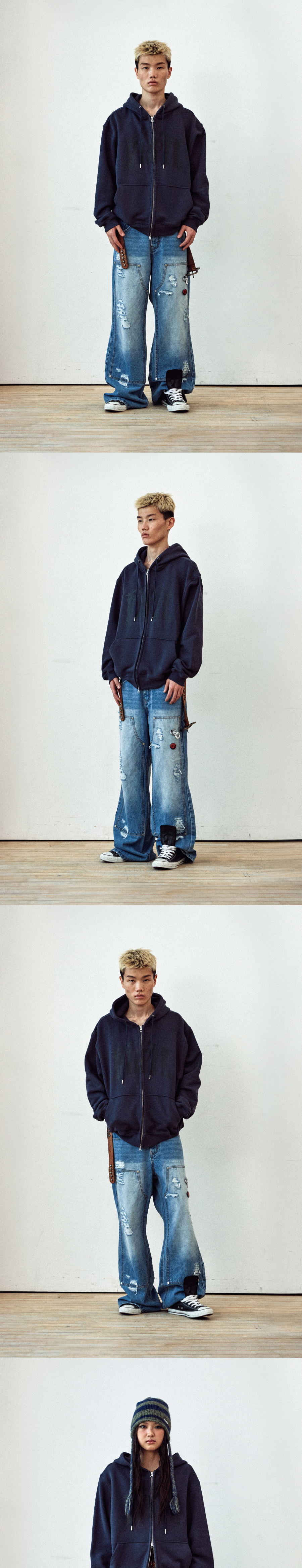 Thevinylhouse Graphic Hoodie Zip Up Navy