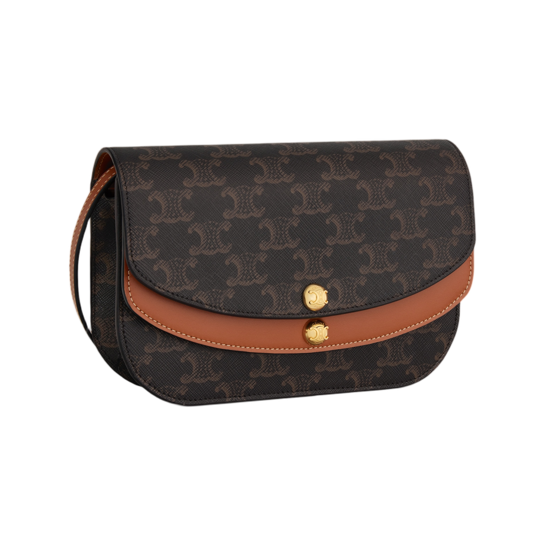 셀린느 듀오 월렛 온 스트랩 트리옹프 캔버스 앤 카프스킨 탄