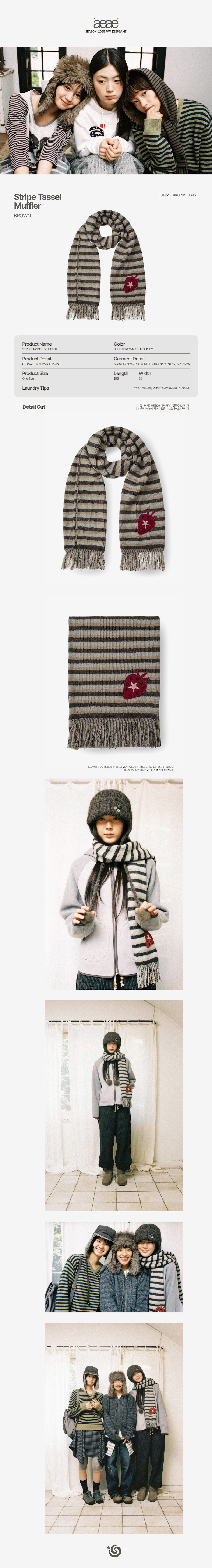 에이이에이이 스트라이프 테슬 머플러 브라운