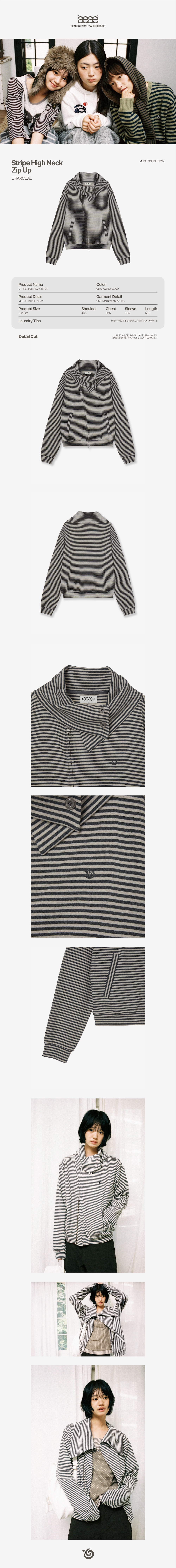 에이이에이이 스트라이프 하이 넥 집 업 차콜