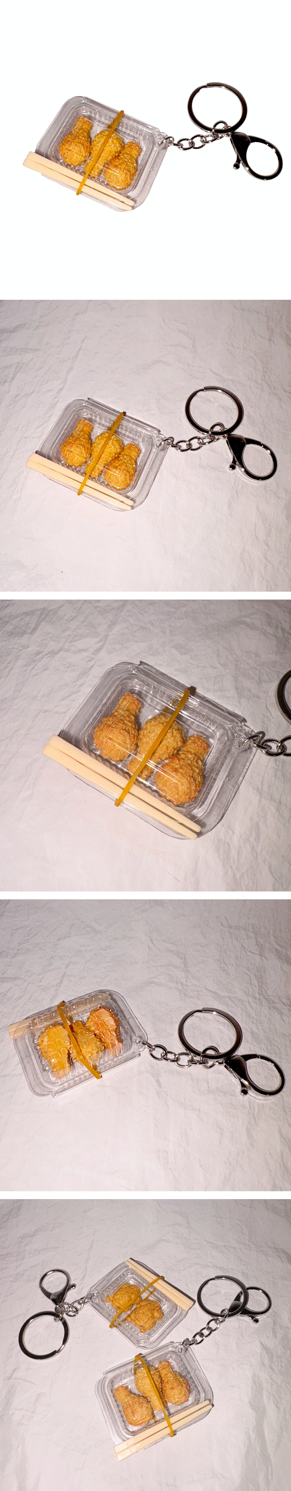 치킨 벤또 키링 🍱🍗 작은 도시락 속에 담긴 치킨 모형으로 완성된 아기자기한 키링이에요. 가방, 에어팟 케이스, 열쇠 어디에 달아도 귀여움이 더해져 보는 순간 기분이 좋아집니다. 다만, 도시락 소재 특성상 강한 압력이 가해질 경우 파손될 수 있으니 사용 시 주의해 주세요. 사이즈 : 가로 5cm × 세로 4cm 소재 : 플라스틱, 레진
