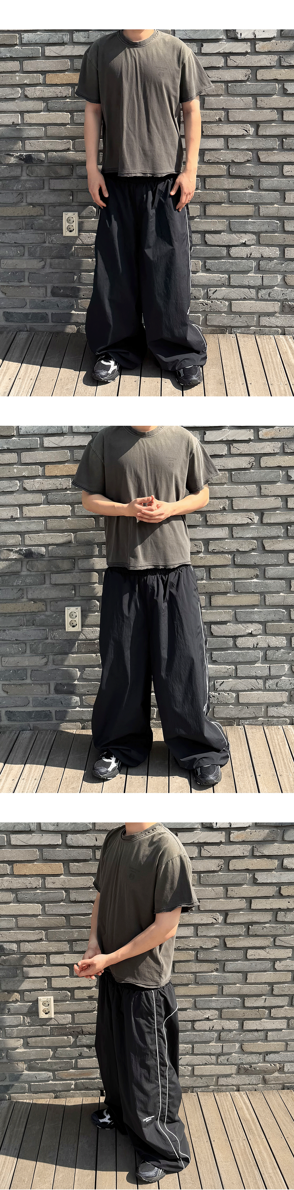 언더마이카 무.113 콤비 로우 엣지 워시드 티셔츠 모카
