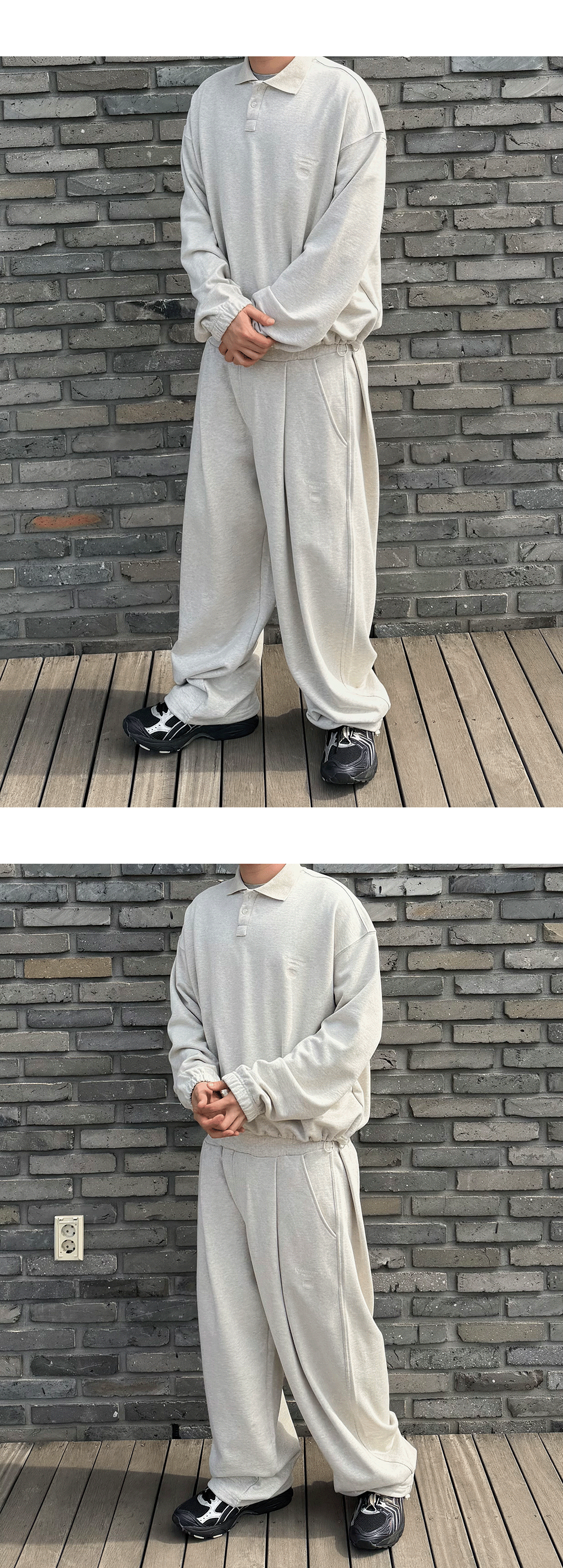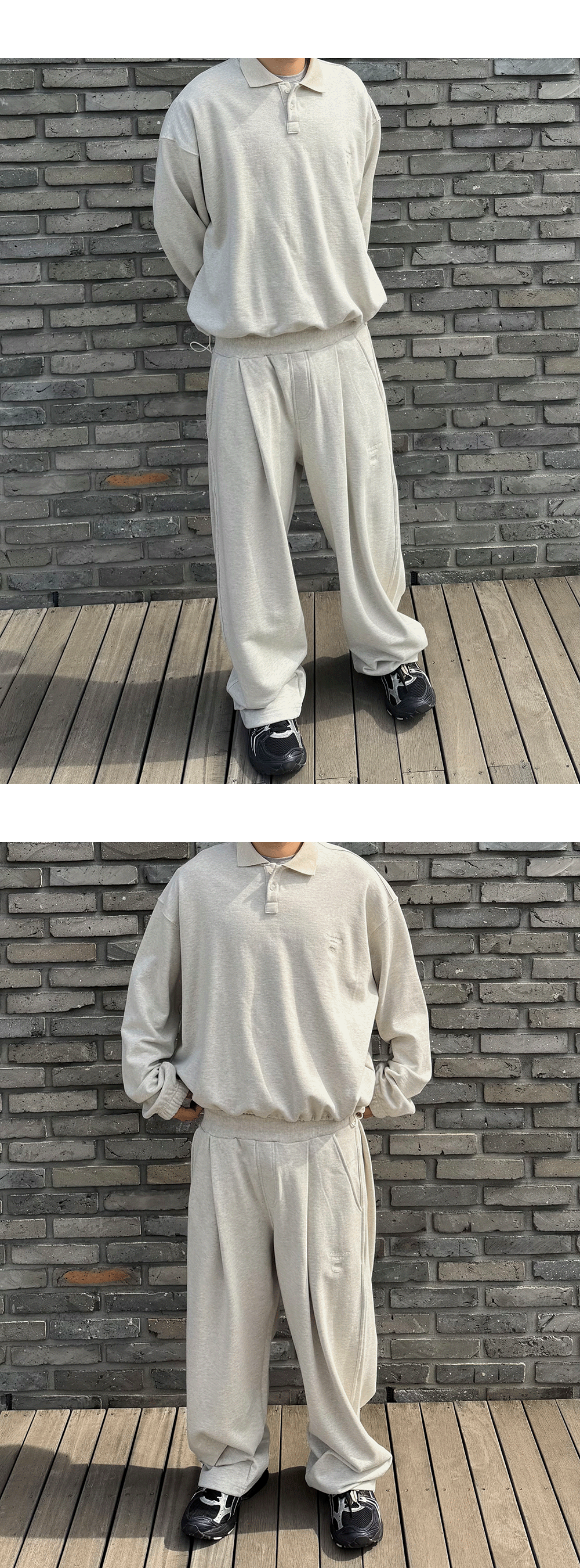 언더마이카 무.145 콤비 웨이스트 립 와이드 스웻 팬츠 오트밀