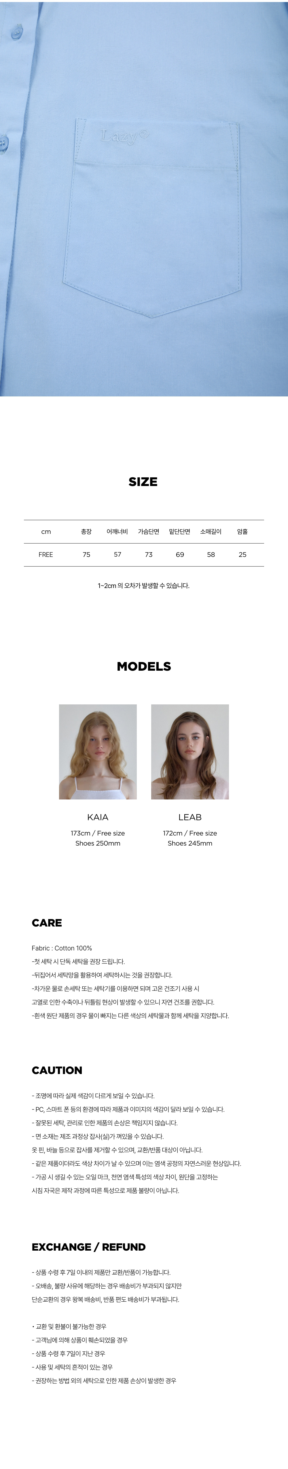 레이지지 루즈핏 클래식 솔리드 셔츠 스카이