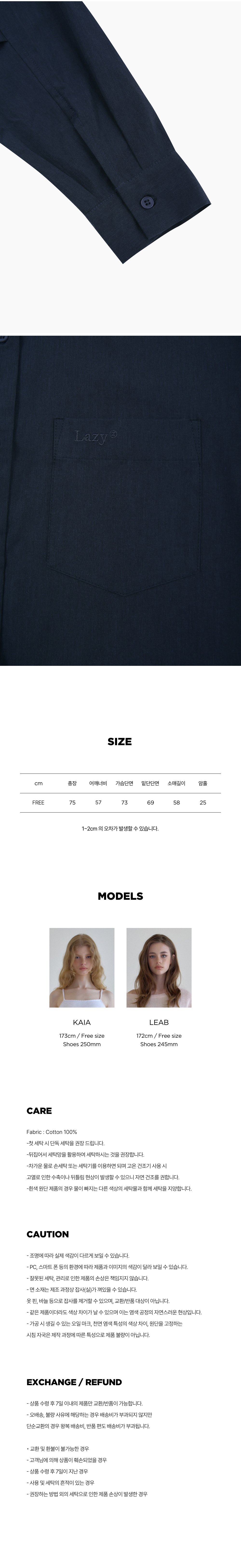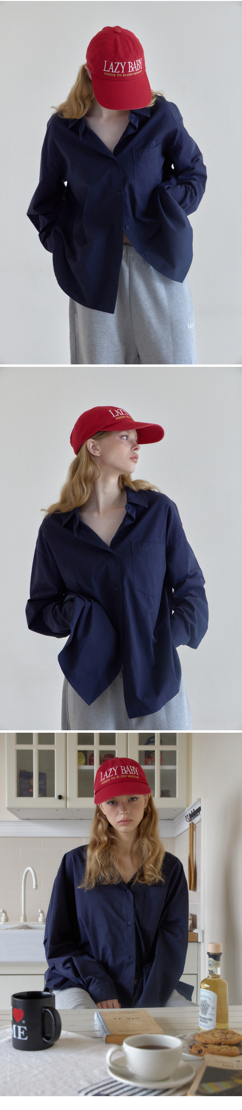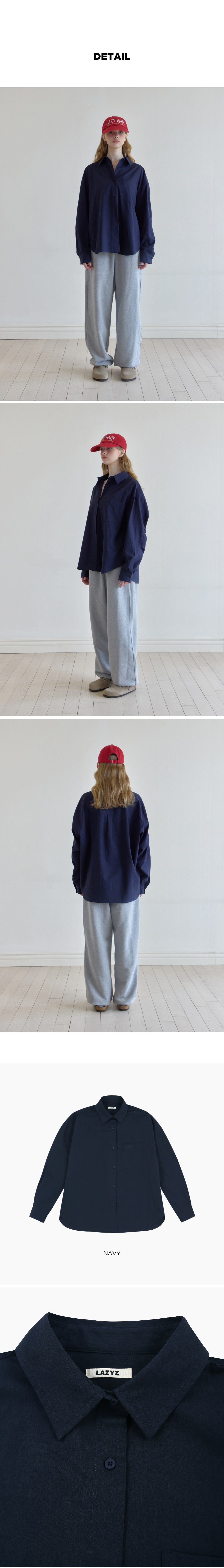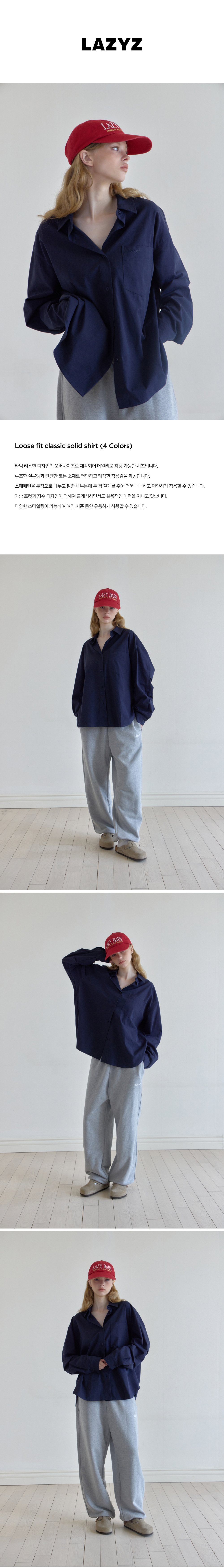 레이지지 루즈핏 클래식 솔리드 셔츠 네이비